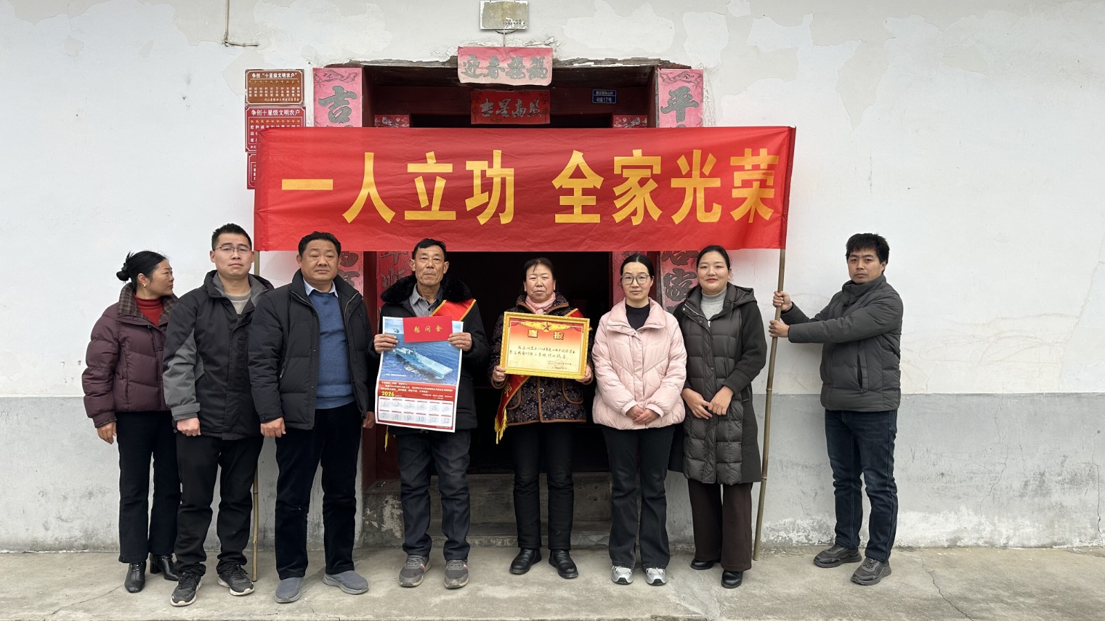 自2025年以来,我县已为269名立功军人家庭送喜报,其中荣获三等功的37人。从“送喜报”到“解难题”,“光荣之家”牌匾与新春灯笼交相辉映,诠释着“军爱民、民拥军”的时代赞歌在鄂西北竹山大地生生不息。(曾章题 向强 曹祖琴)