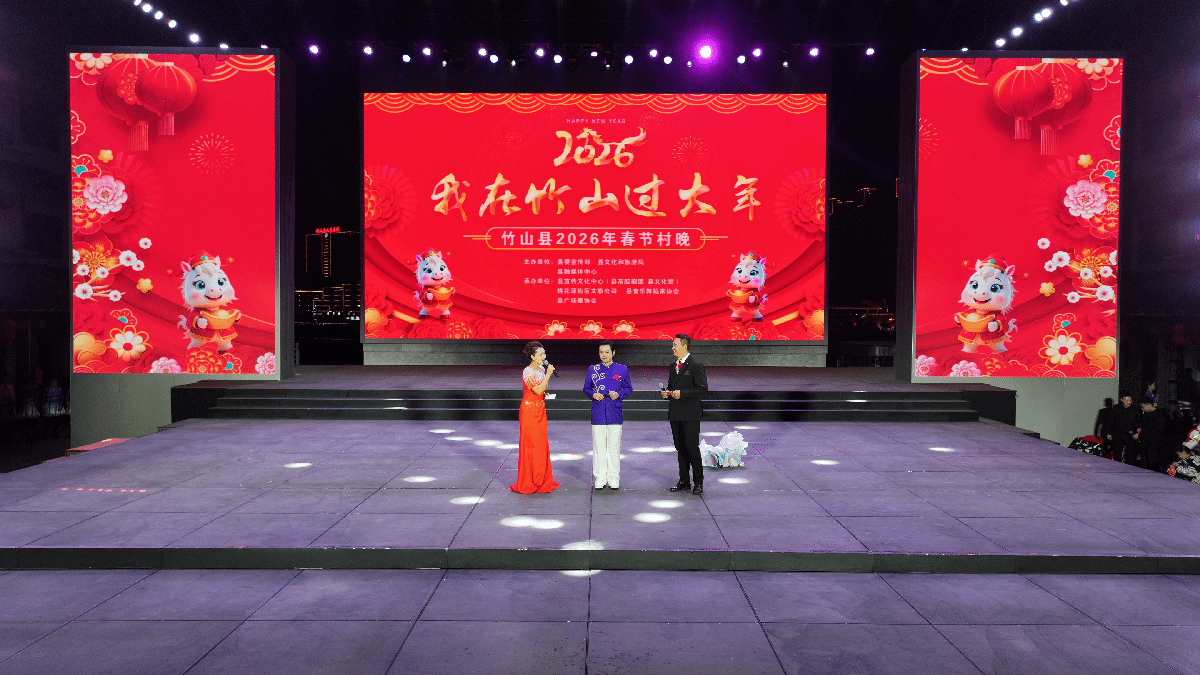 今日竹山网消息 金鼓催春潮涌堵河,骏马奔腾福满竹山。2月12日晚,竹山县桃花源街区女娲广场灯火璀璨、暖意融融,“我在竹山过大年”竹山县2026年春节“村晚”在这里隆重举行。