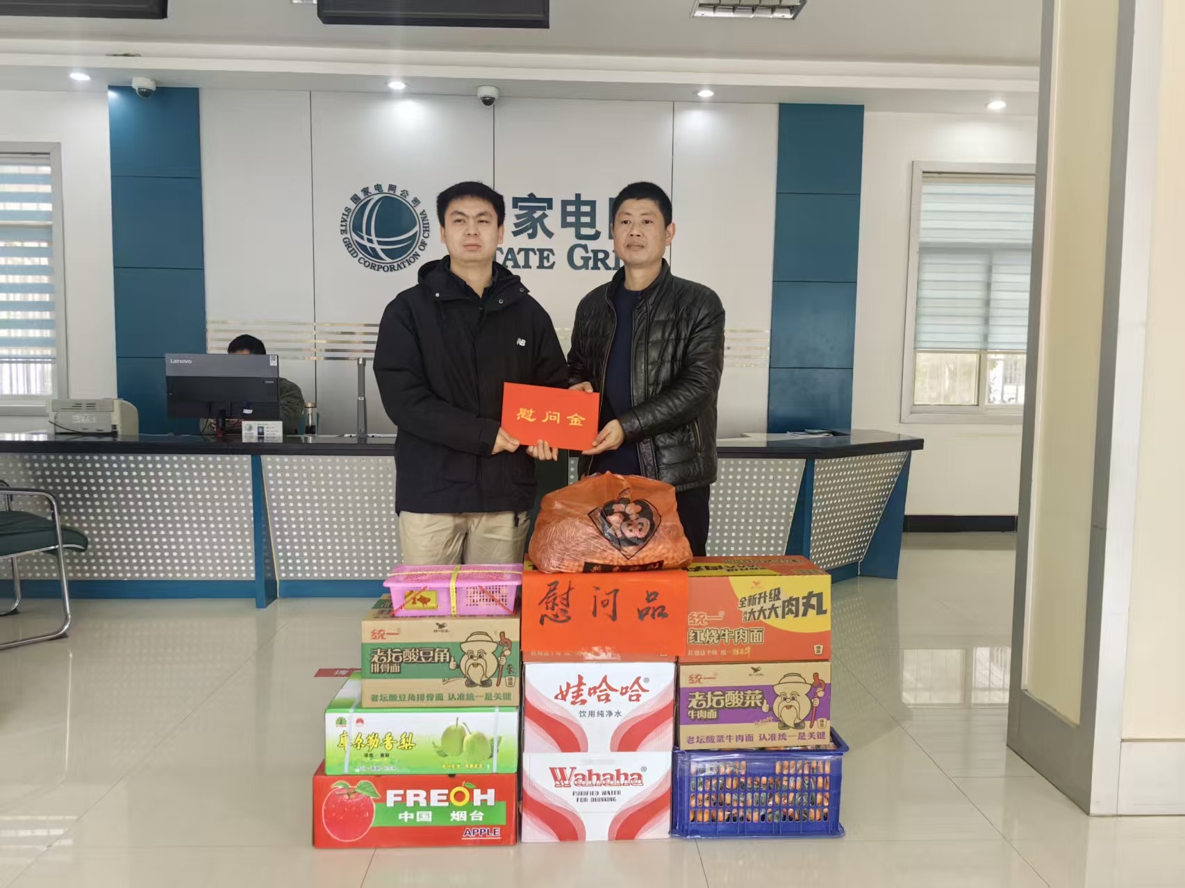 今日竹山网消息 2月12日,春节前夕,国网竹山县供电公司领导班子到官渡供电所,看望慰问坚守在一线的基层职工,送去慰问品,并致以节日问候。