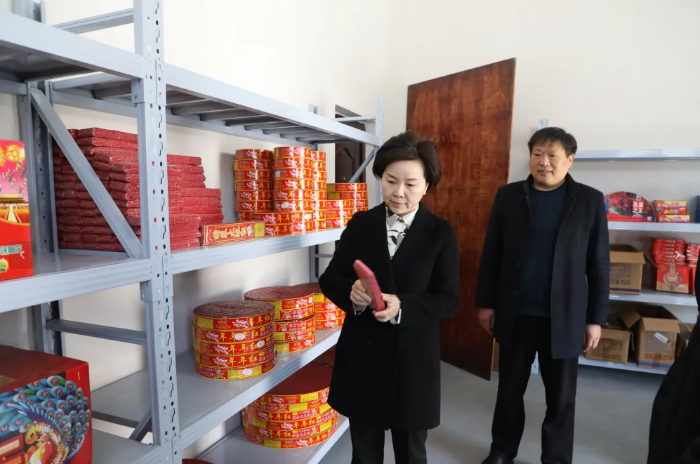 在潘口河村烟花爆竹经营门店,王丽媛仔细检查门店的经营资质、产品存放、消防设施配备以及安全管理制度落实情况。要求经营主体要切实增强安全意识,严格遵守“五个严禁、三个务必”等各项安全管理规定,从源头上消除安全隐患。