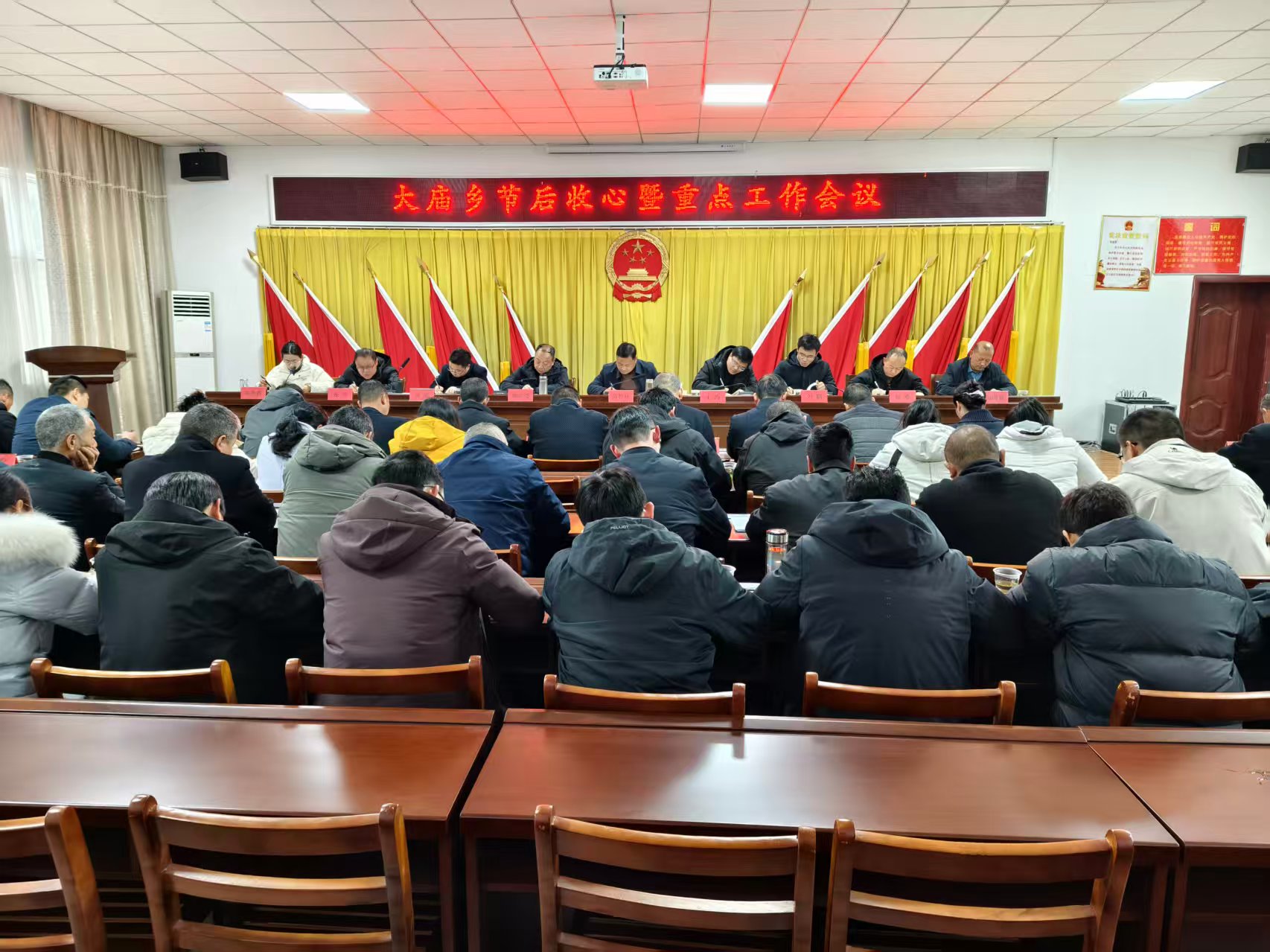 今日竹山网消息 2月25日,大庙乡召开节后收心暨重点工作会议,动员全体干部迅速收心归位,以饱满状态投入新一年工作,确保开局有力、起步平稳。政府机关干部、乡直单位负责人、各村书记及文书、驻村工作队参加会议。