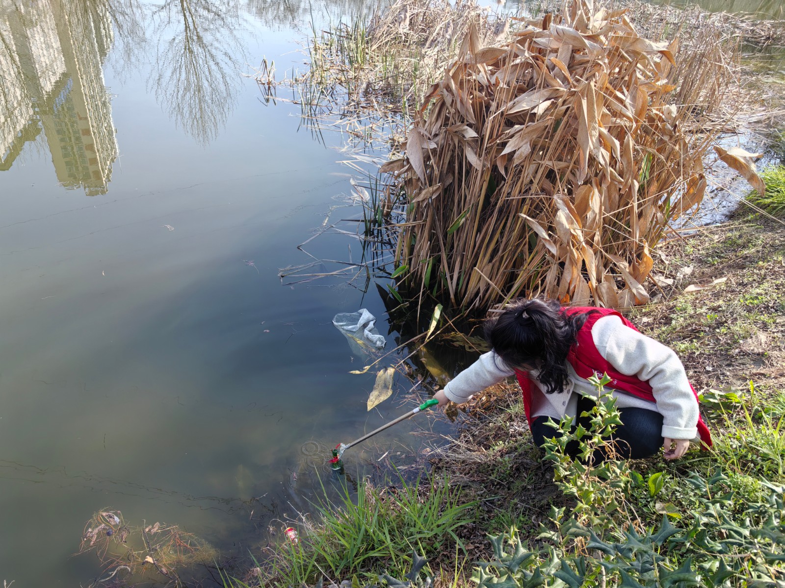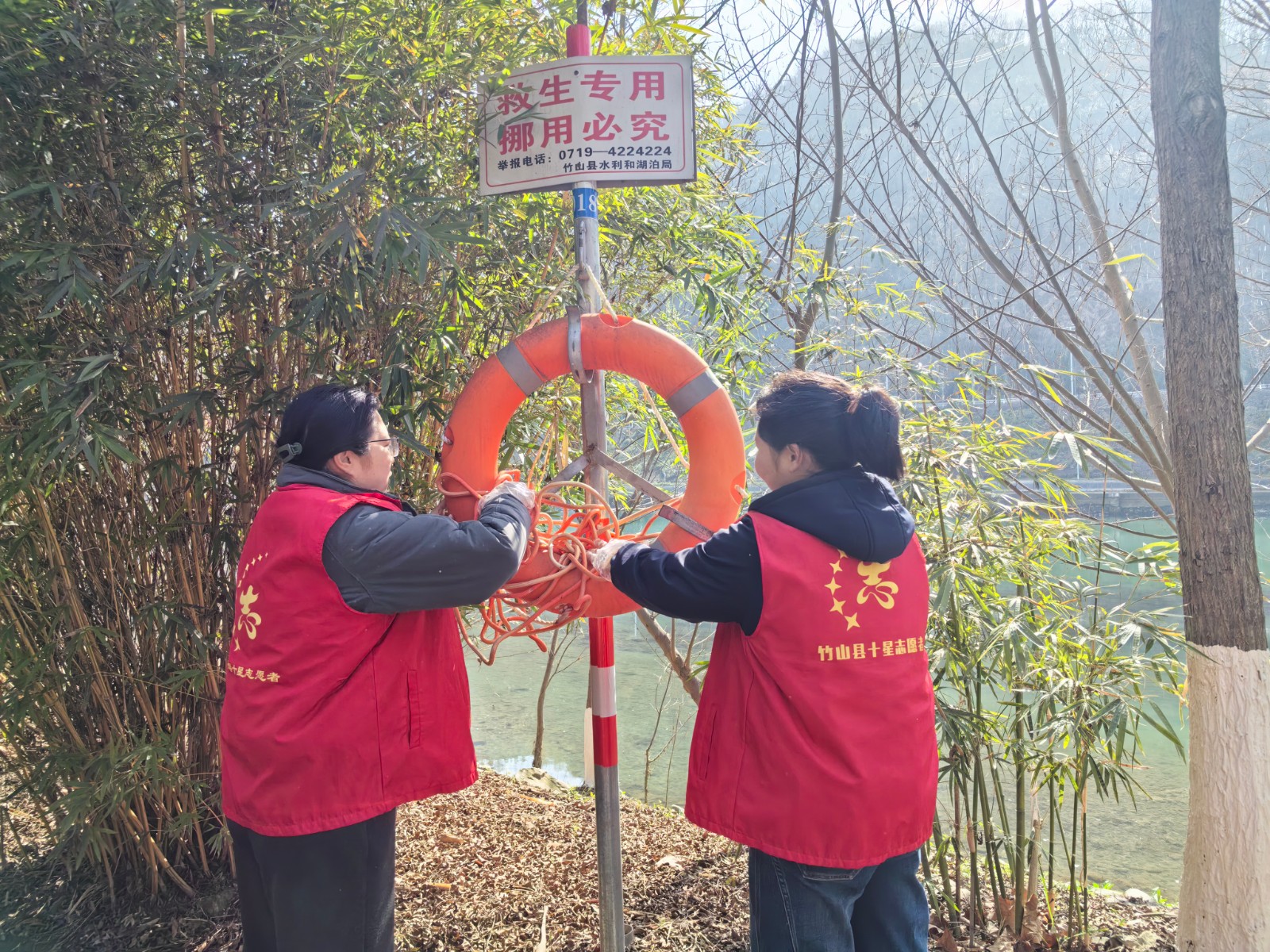 活动现场,志愿者们化身“河道卫士”,一手抓环境整治,一手抓安全保障。大家手持垃圾夹、垃圾袋,沿着河岸细致清理绿化带、浅滩、草丛中的塑料袋、饮料瓶等生活垃圾,对水面漂浮物则俯身探入、小心打捞,不放过任何一处卫生死角。与此同时,志愿者们同步对河道沿线的救生圈、救生绳等防溺水装备进行“体检”,仔细检查完好度与牢固性,对发现的问题及时登记上报,并对装备进行清洁整理,确保关键时刻“拉得出、用得上”,让生态保护与安全守护同步推进。