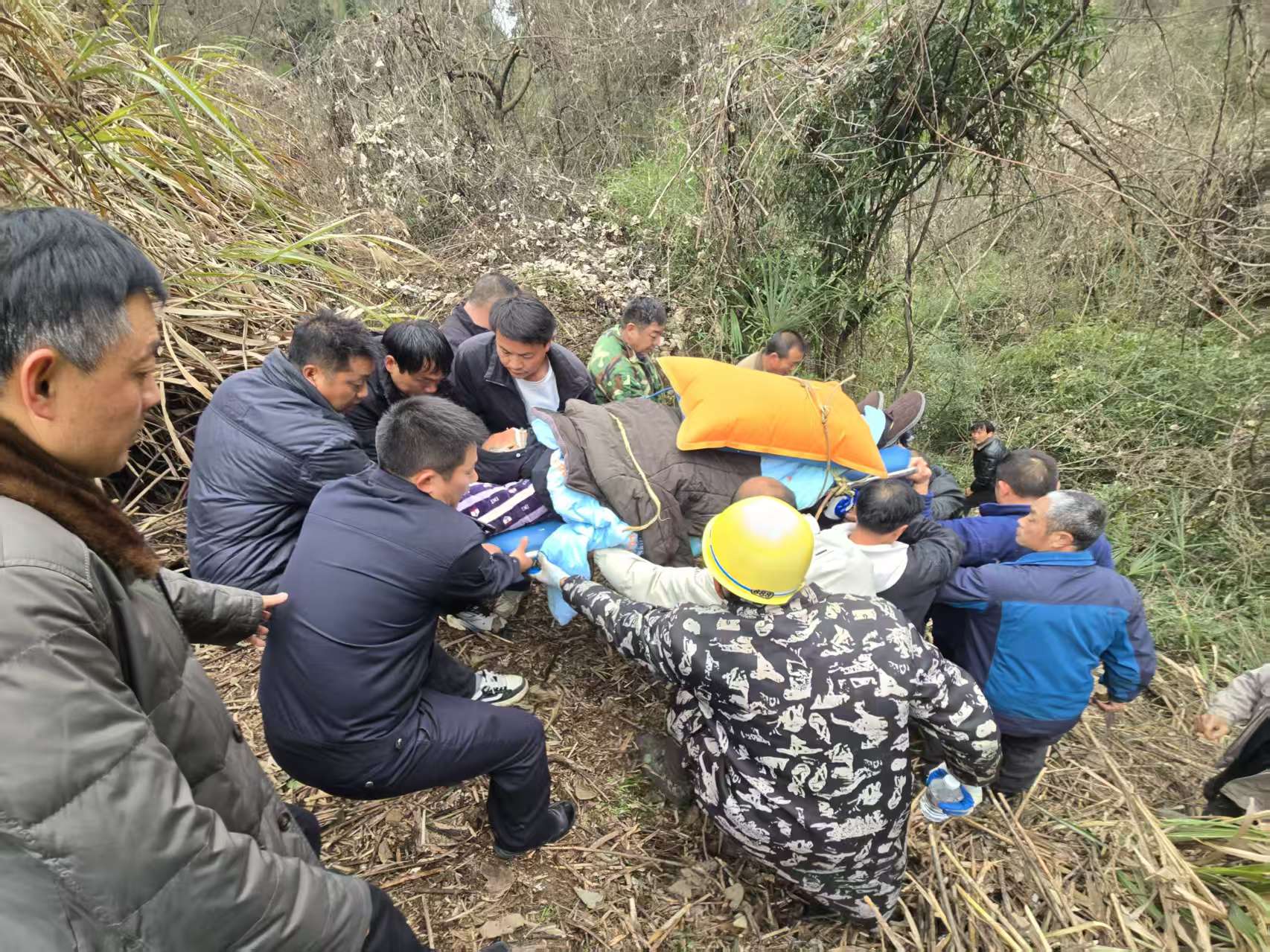 “快!给老人保暖!”民警们立即为老人披上棉衣。随后,众人小心翼翼将老人抬上担架,接力护送下山,第一时间送往医院救治。因救援及时,老人目前已脱离危险,身体无大碍。(曾宪伟 徐自超 李萌)