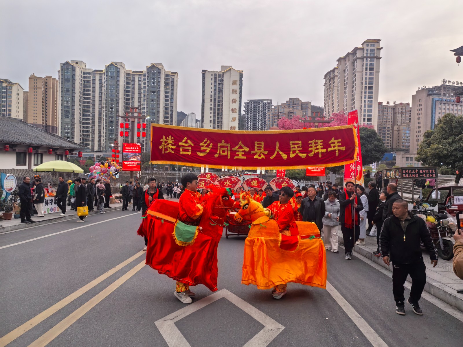 今日竹山网消息 3月3日,正值农历正月十五元宵佳节,桃花源街区锣鼓齐鸣、人头攒动、热闹非凡。一场以“民俗展演闹元宵”为主题的文化盛宴在此隆重举行,来自楼台乡的群众文艺爱好者们盛装登场,用自编自演的精彩节目,为广大市民献上了一份充满年味的文化厚礼。