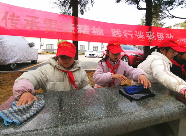 今日竹山网消息 3月6日,宝丰镇施洋小学的部分党员教师和少先队员们在宝丰镇施洋纪念馆,开展了以“传承雷锋精神,践行迷彩思政”为主题的义务清扫活动。