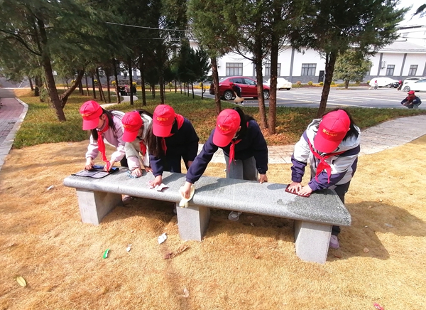 孩子们在党员教师的带领下,围绕纪念馆停车场及周边公共区域分成若干小队,迅速投入劳动。有的手持扫帚,细心清扫停车场角落的落叶与烟头;有的拿着抹布,踮起脚尖反复擦拭路边的公共座椅、宣传栏和纪念馆标识牌。活动现场,党员教师们以身作则,捡拾起绿化带深处的白色垃圾,并向学生们讲述施洋烈士的奋斗故事,将劳动教育与红色思政课巧妙融合。