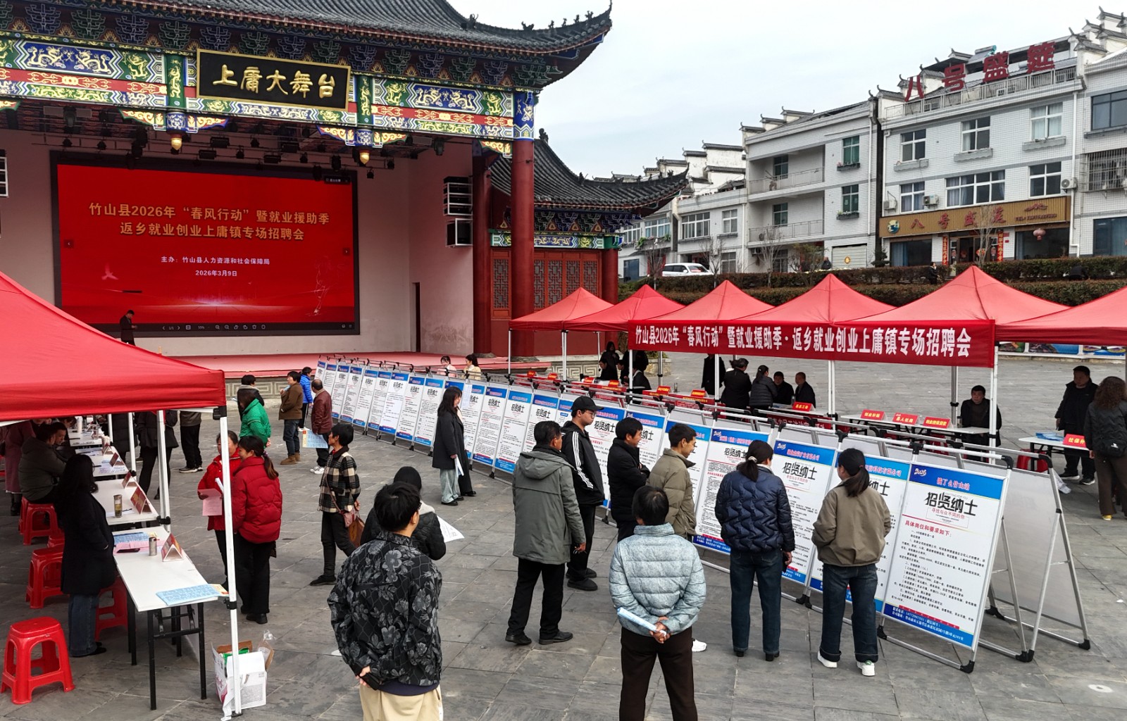 今日竹山网消息 3月9日,竹山县2026年“春风行动”暨就业援助季返乡就业创业上庸镇专场招聘会在上庸镇鲜花广场举行。活动聚焦移民后续帮扶、返乡人员就近就业,把岗位、政策、服务送到群众家门口,现场人头攒动、咨询不断,吸引数百名群众进场应聘,数百名移民群众当场达成就业意向。