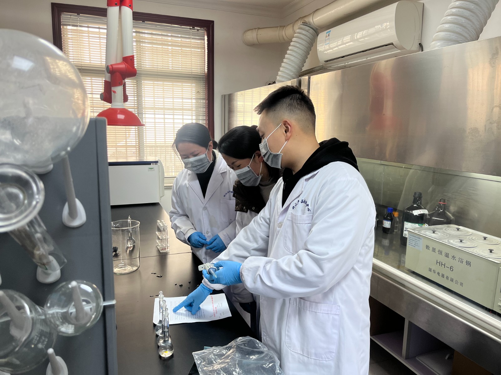 了解诉求后,中心食品药品检验股邀请技术骨干进入中心实验室进行实验,结合2025版《中国药典》标准,围绕核心环节开展手把手指导:规范关键试剂配置流程,演示溶液定容技巧,讲解可见分光光度计操作要点,解读蒽酮-硫酸法实验原理,助力员工掌握核心技术。