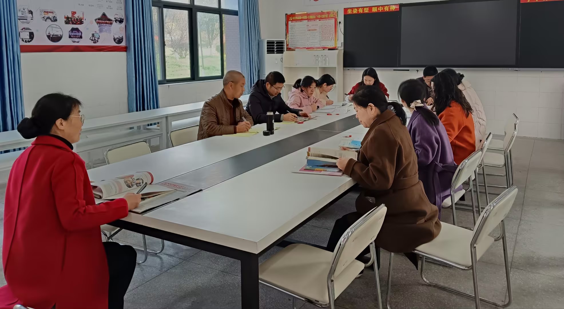 活动以“凝聚集体智慧 提升教学实效”为核心,各学科备课组深耕细研,语数外组夯实基础,语文组深耕文本、打磨读写,数学组拆解难点、优化思路,英语组打造情境、强化应用;理化生组聚焦实操,细化实验流程,培养学生科学素养;政史地组渗透德育,结合时政史料与地域特色,传递家国情怀。老师们围坐交流、凝聚共识,实现资源共享。学校鼓励教师将集体备课的成果应用到课堂教学实践中,并通过听课、评课等方式,对教学效果进行跟踪评估,及时调整教学策略,确保集体备课的成果能够真正落地生根。
