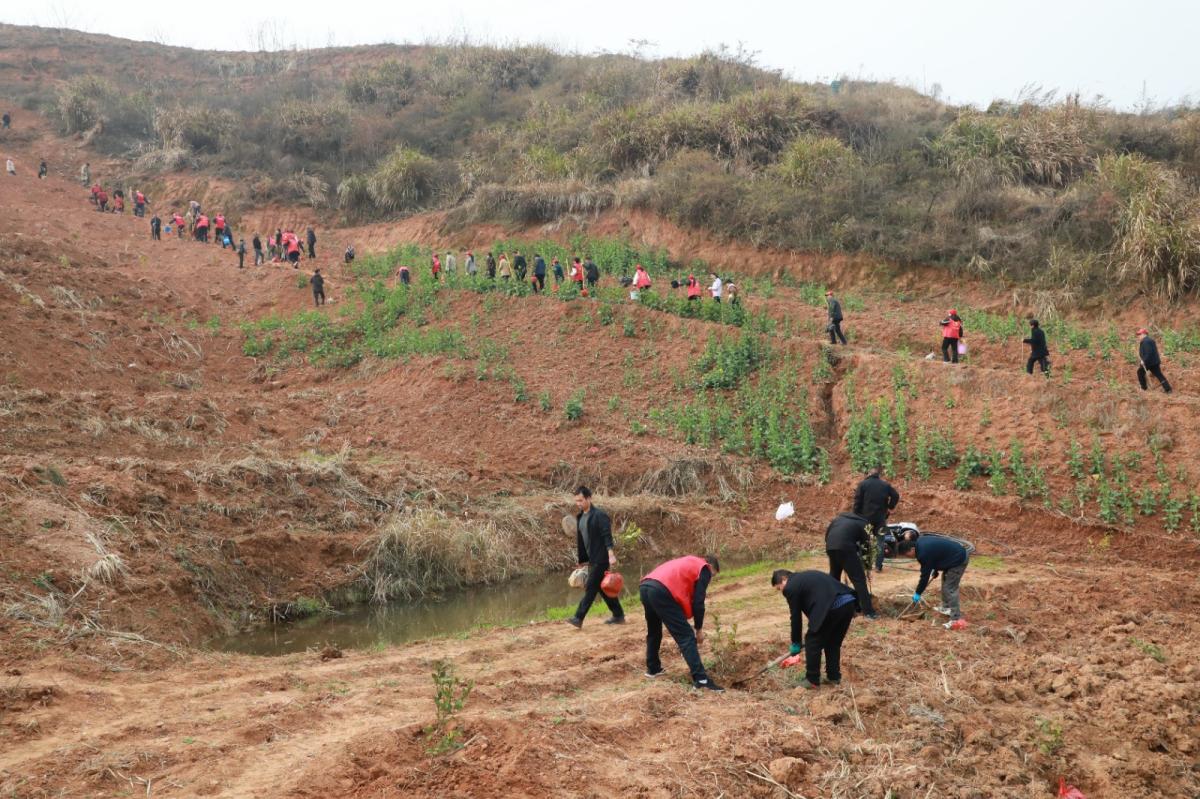 今日竹山网消息 3月12日植树节当天,溢水镇组织乡镇干部、乡直单位职工及社区志愿者300余人,在刘家湾开展义务植树活动,以实际行动为荒山添绿,为乡村振兴助力。