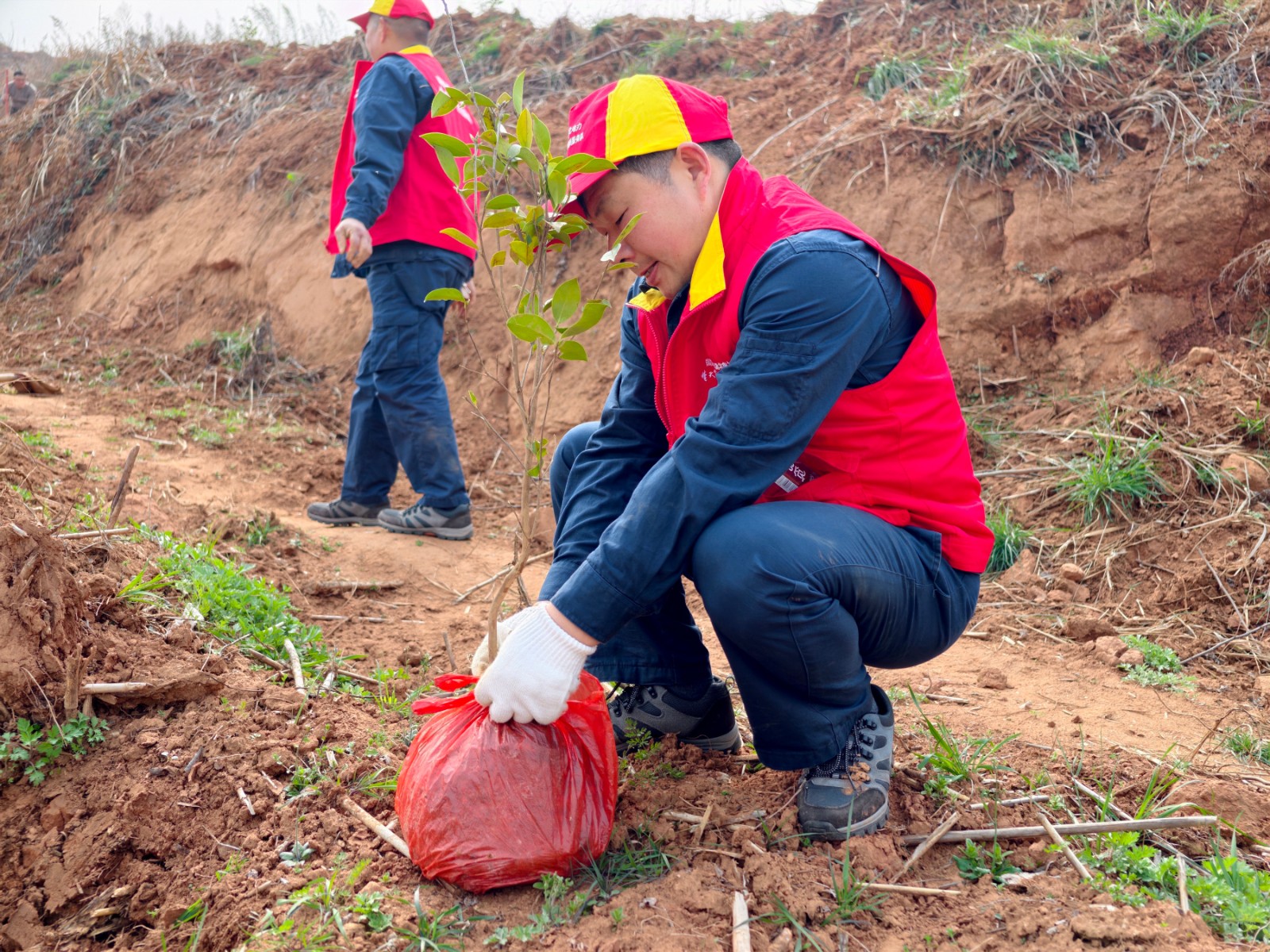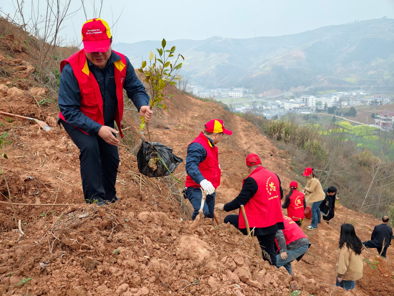 3月12日,春风和煦,万物复苏。在溢水镇政府的统一组织下,国网竹山县供电公司员工徐洪波、王义兵一行四人,来到何家湾村参加义务植树活动。活动现场,大家分工协作,挥锹铲土、扶苗填坑、提水浇灌,呈现出一派热火朝天的劳动景象。