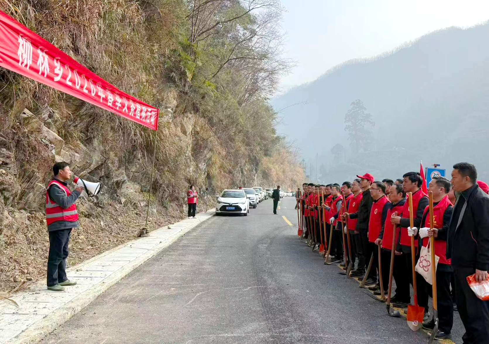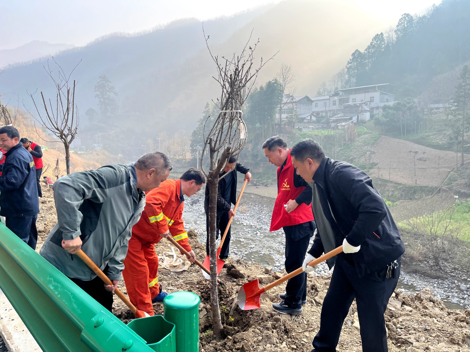在保护区民主村植树现场,管理站干部职工与柳林乡民主村的村民们热情高涨、干劲十足。扶苗正根、挥锹培土、踩实固根……每一个环节都一丝不苟,每一道工序都认真细致。经过辛勤劳作,共栽植樱花树等苗木200余株,新栽树苗整齐排列、迎风挺立,为初春的保护区增添了勃勃生机。