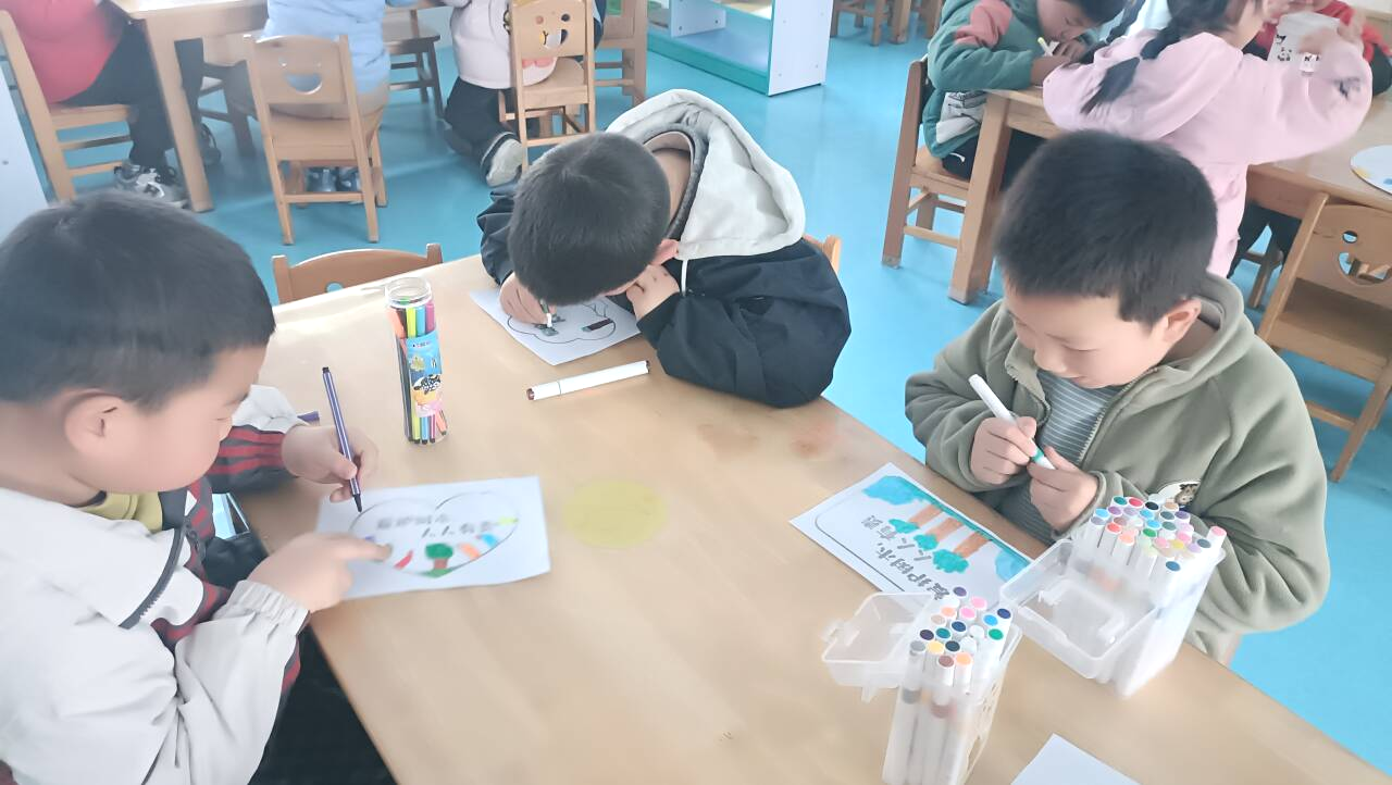 活动中,小班小朋友化身可爱的“护绿小天使”,手持小水壶,认真地为园内的花草树木浇水。中班幼儿发挥奇思妙想,用五彩画笔描绘心中的春天,一幅幅画作满是对大自然的热爱与向往。大班孩子则围绕“爱护环境”主题,亲手制作环保宣传牌,写下“保护环境,人人有责”“花草树木是我们的好朋友”等温馨标语,并将宣传牌悬挂在校园草坪、花坛之中,用实际行动呼吁大家共同爱护绿色家园。