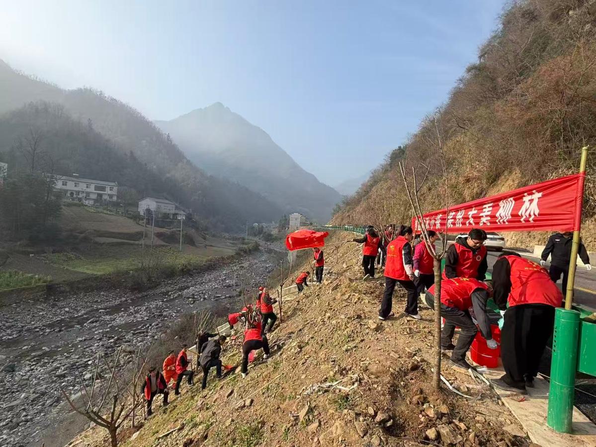 今日竹山网消息 值此植树节来临之际,3月13日 ,柳林乡全体乡村干部、新时代文明实践志愿者在民主村邓家庄开展“创建神农小镇、装扮大美柳林”义务植树活动。