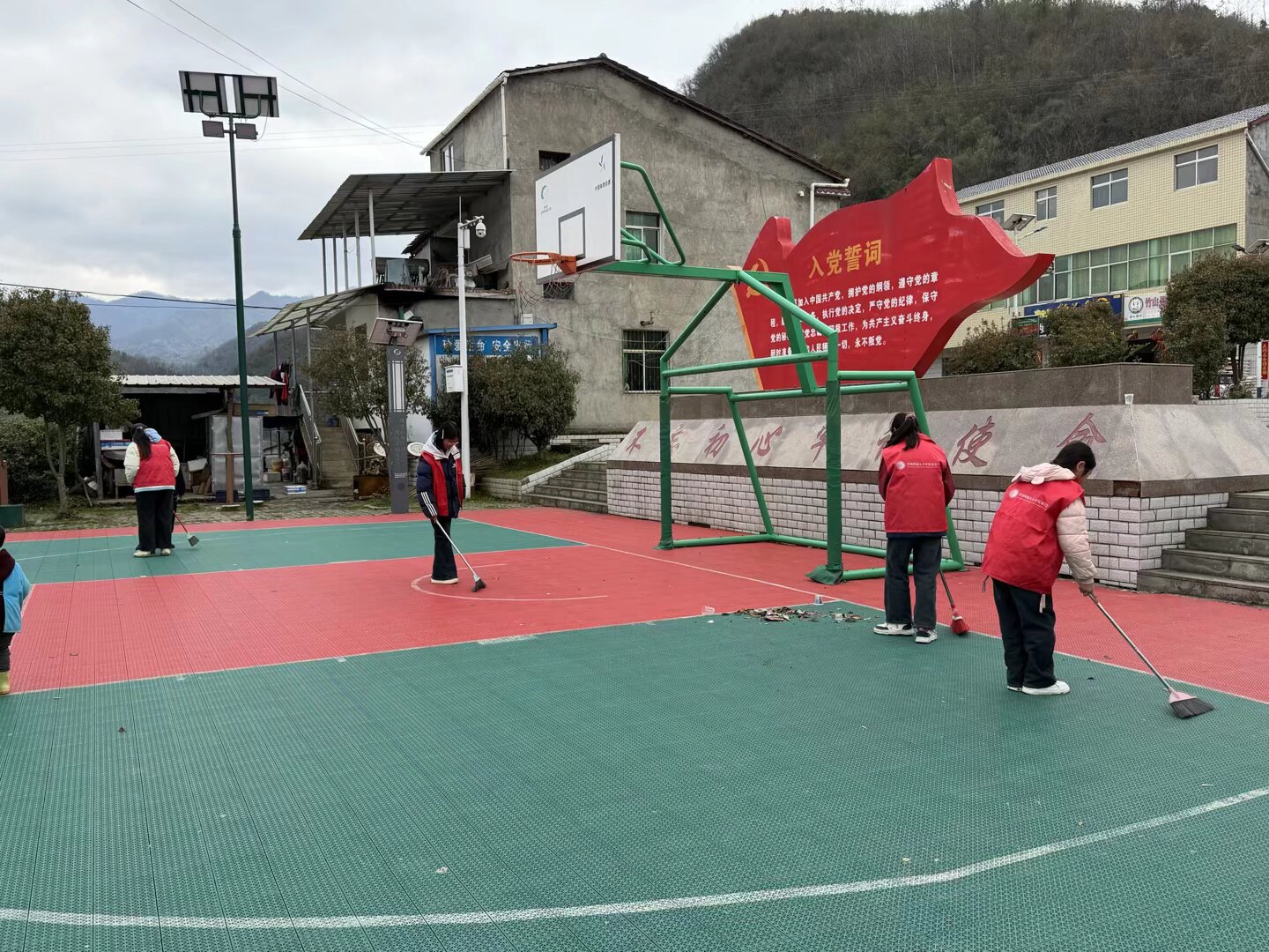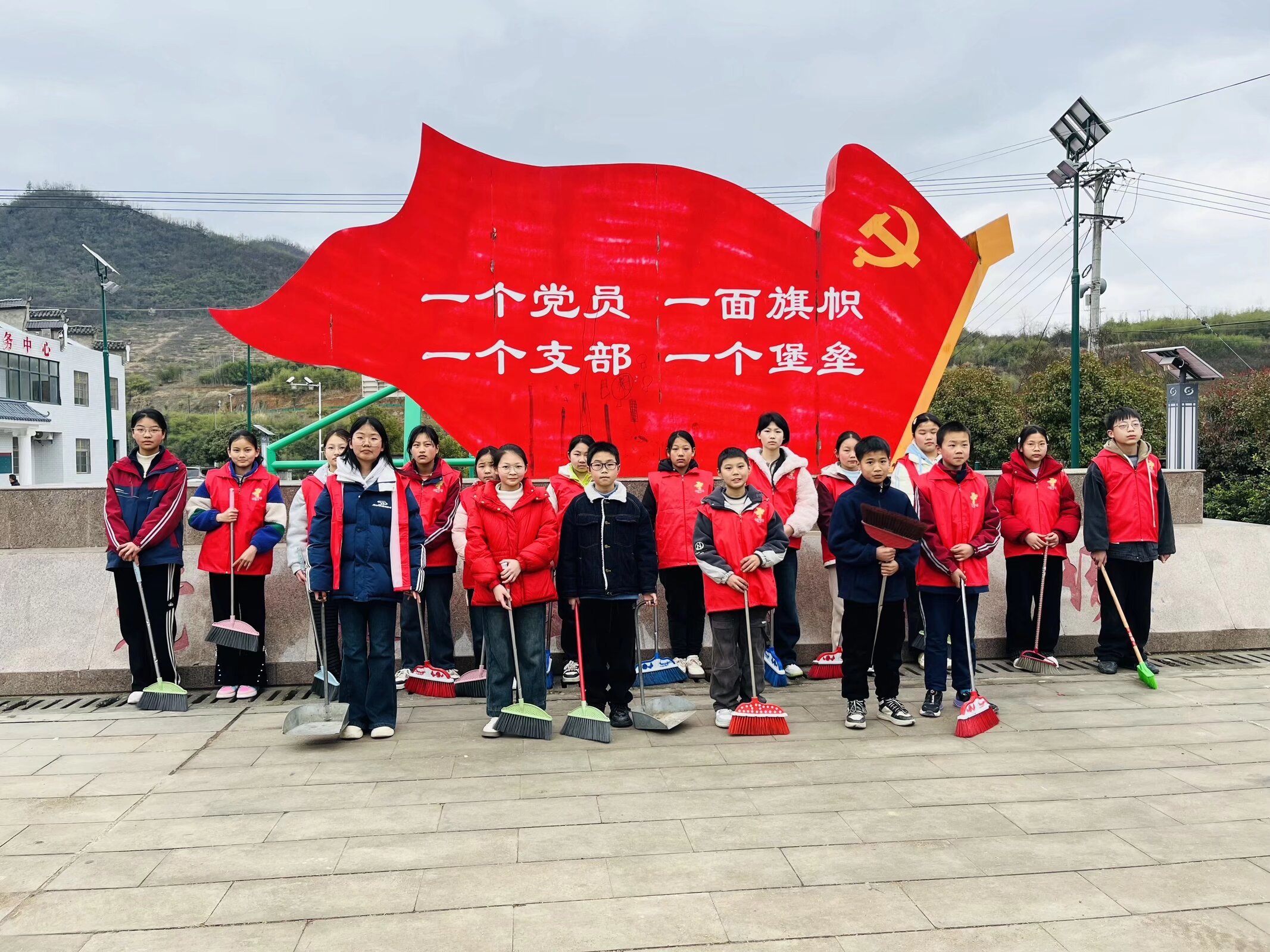 活动中,同学们自带扫帚、簸箕等清洁工具,在老师和小组长的带领下分工协作、干劲十足。大家对校园周边道路、新时代文化广场等公共区域进行全面清扫,仔细清理卫生死角,不放过一处垃圾、不留下一片死角。经过共同努力,周边环境焕然一新。