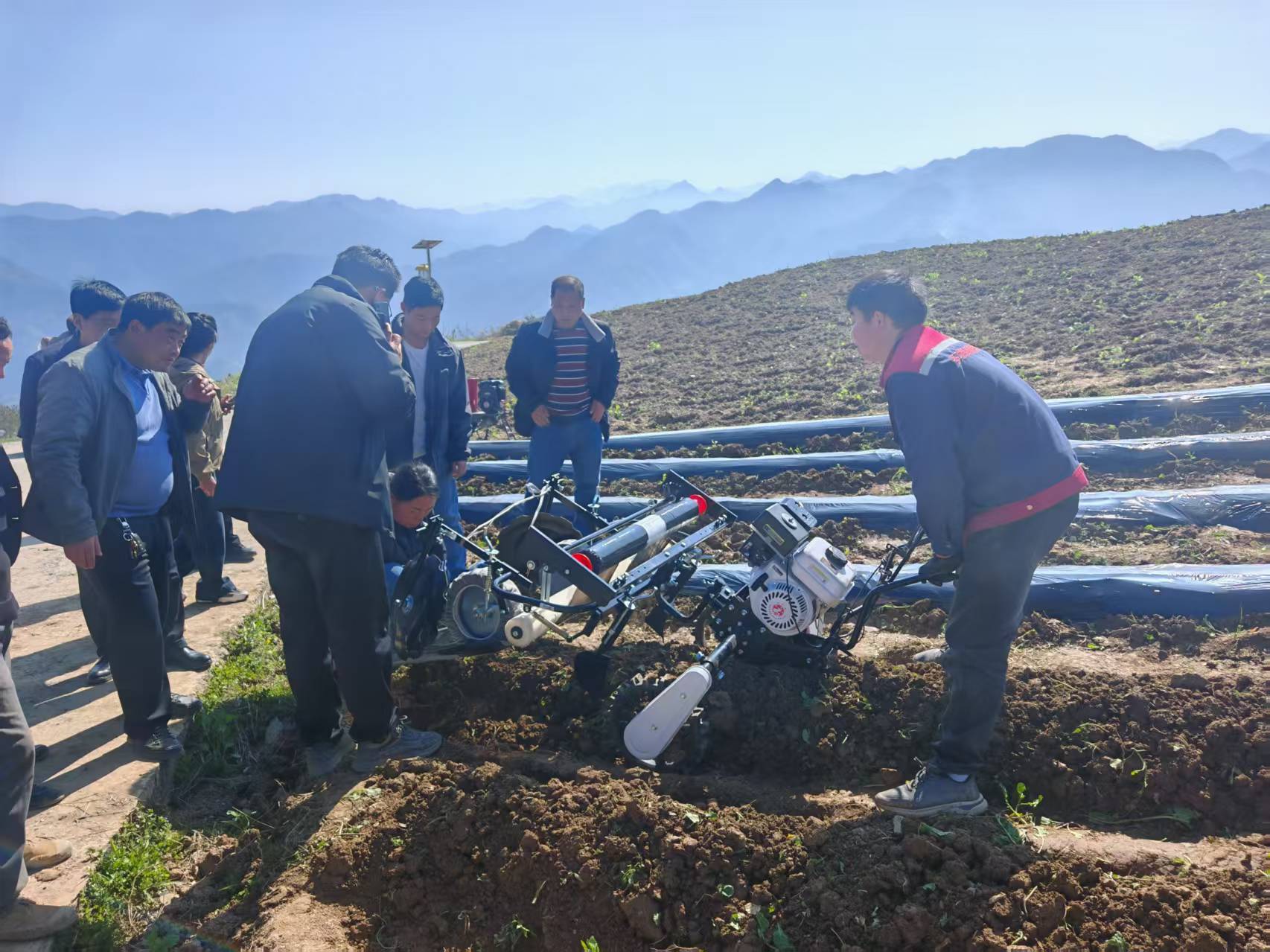 技术扎根田间,烟叶站技术人员将课堂搬到田间地头,现场测量讲解,以手把手教学推动烟叶标准化生产落地。机械赋能增效,农机作业一天可完成20亩,远超以往锄头劳作效率,缓解劳动力短缺,筑牢烟叶高质量发展根基。