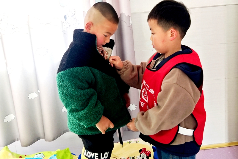 今日竹山网消息 3月16日,麻家渡镇第二幼儿园一场以“以大带小”的真情关爱活动悄然展开。大班的哥哥姐姐们走进小班教室,用稚嫩的双手为弟弟妹妹们穿衣、系鞋带,传递着纯真的关爱与责任。