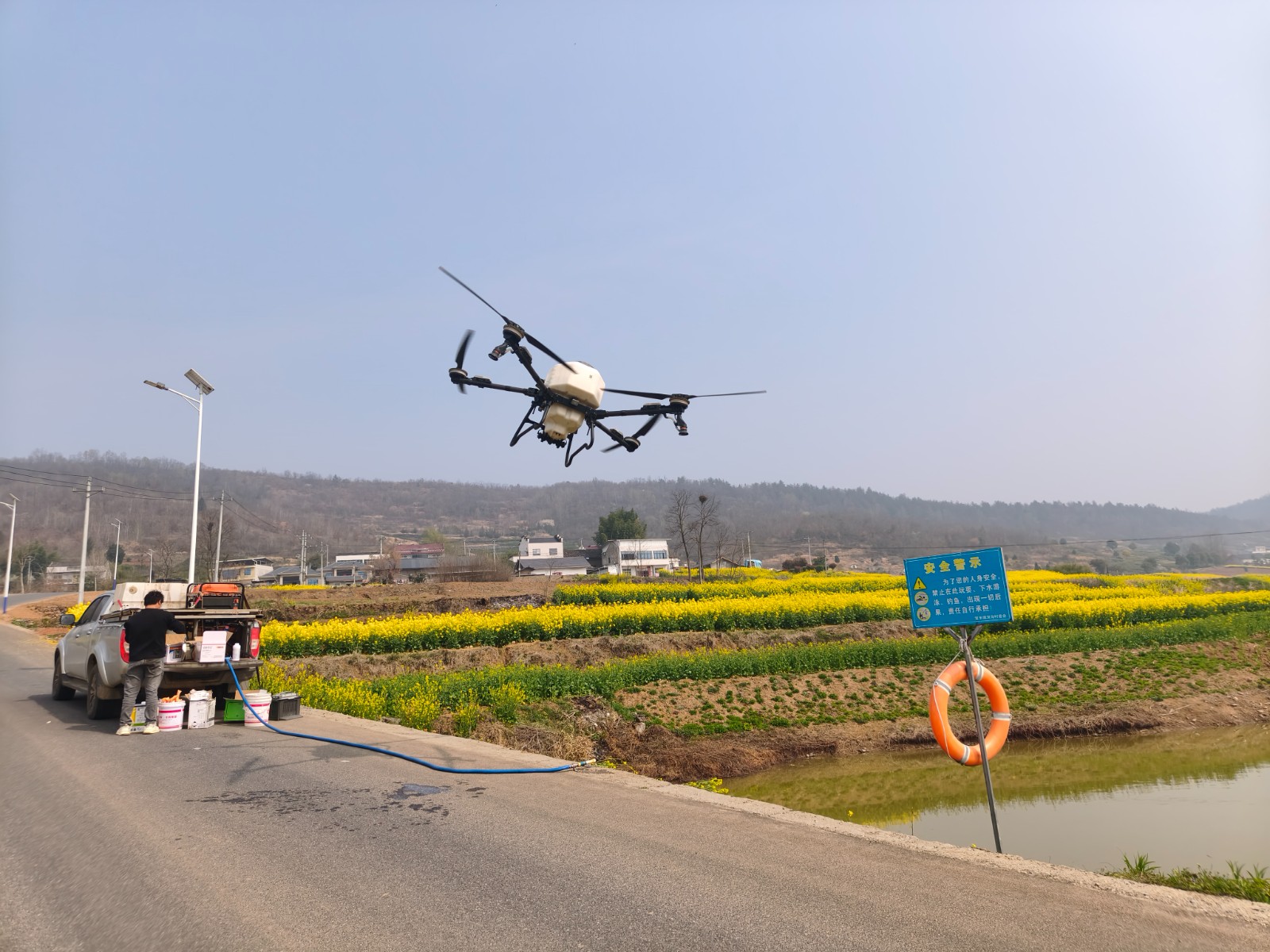 此次飞防紧扣油菜花期管理需求,通过科学配施药剂和叶面肥,同步实现促生长、防花而不实、防早衰、防菌核病、防高温逼熟,达到精准补硼、防病、抗逆的效果。无人机作业效率高、喷施均匀、覆盖全面,有效解决了人工防治劳动强度大、成本高、易漏喷重喷等难题,大幅提升防控效果和用药效率。