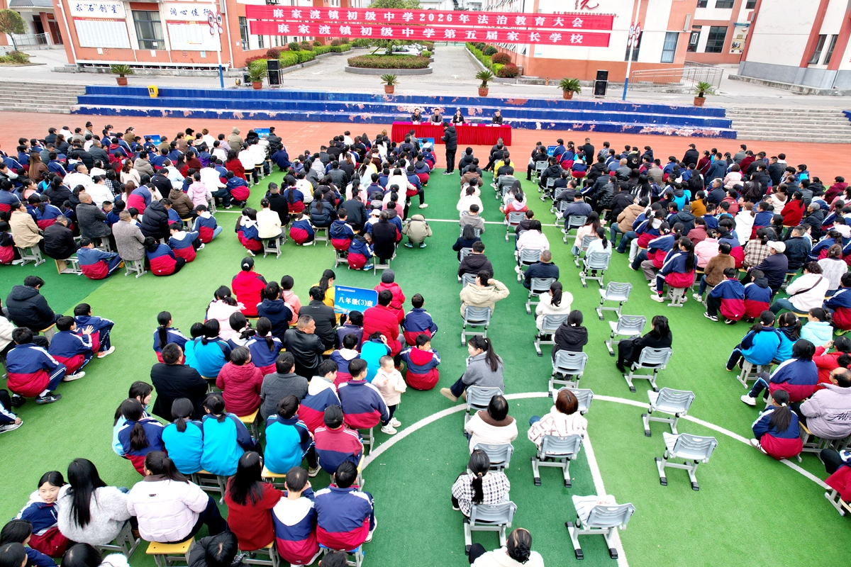 今日竹山网消息 3月19日,麻家渡镇初级中学举行2026年春季法治教育暨第五届家长学校活动,县人民检察院法治宣讲团通过案例讲解、互动交流等形式,为该校1300余名师生和家长们呈现了一堂生动实用的“法治开学第一课”,守护青少年在成长道路上知法守法、健康前行。