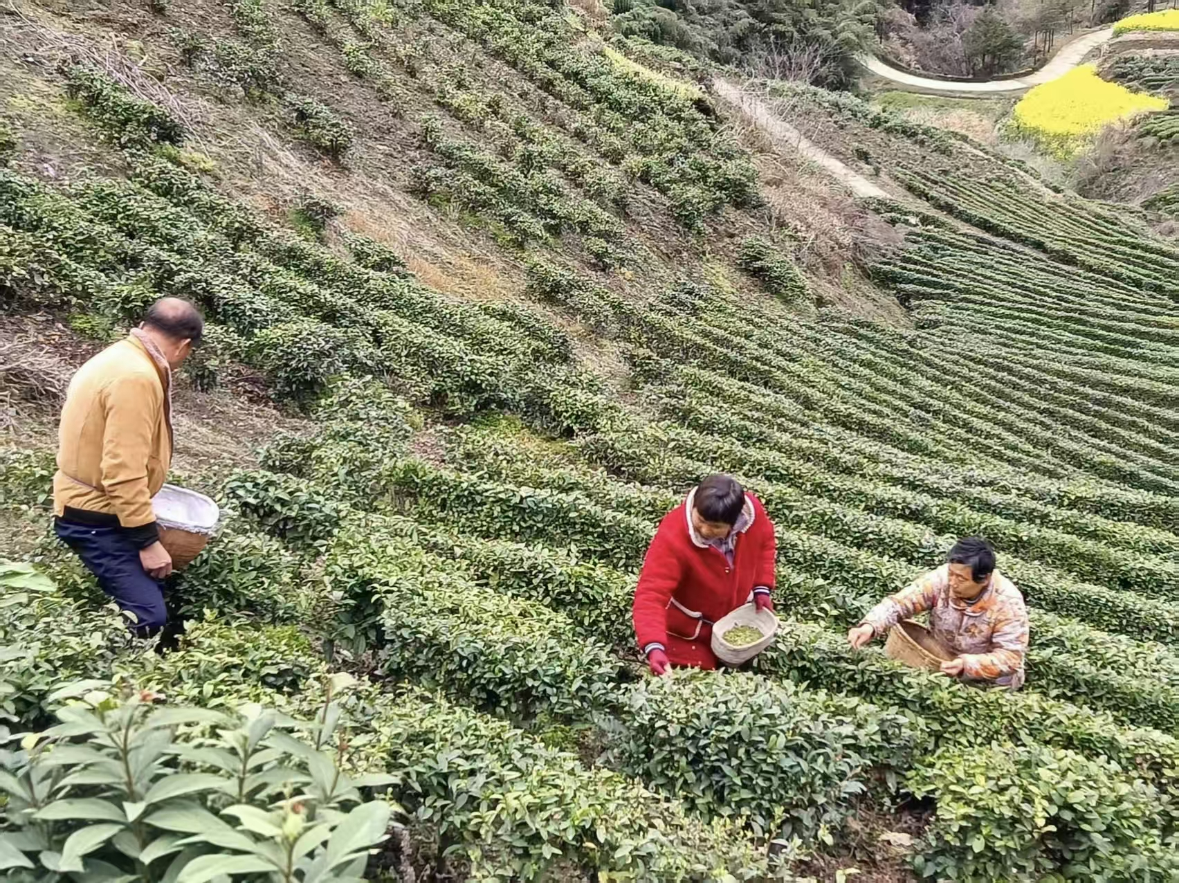 今日竹山网消息 3月18日,井泉村茶园开展2026 年春季头茶采摘活动。茶农抢抓采摘时节,进行茶叶采摘作业。