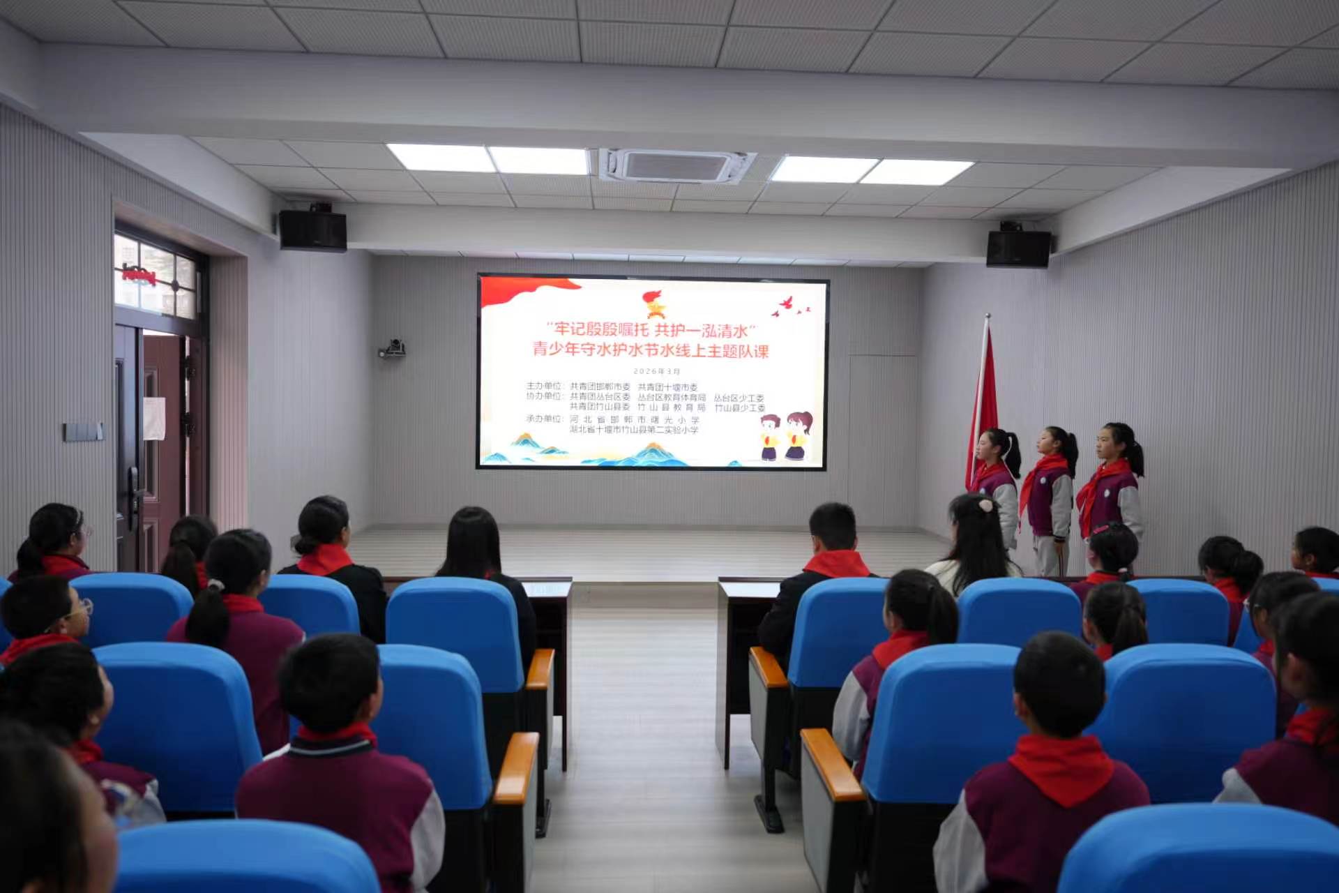 今日竹山网消息 3月19日,县第二实验小学与河北省邯郸市丛台区曙光小学的少先队员们云端相聚,共同开展主题队课活动,结下了跨越千里的护水情谊。