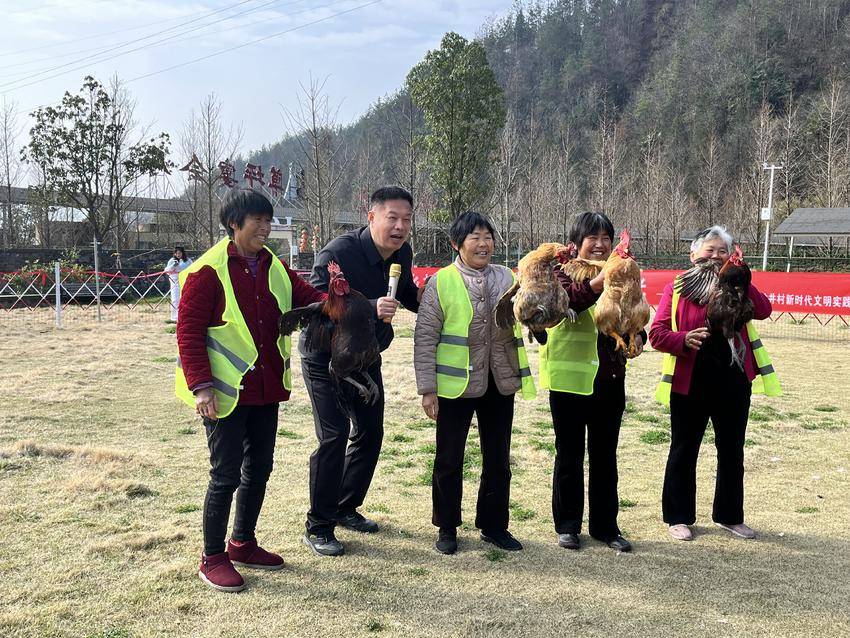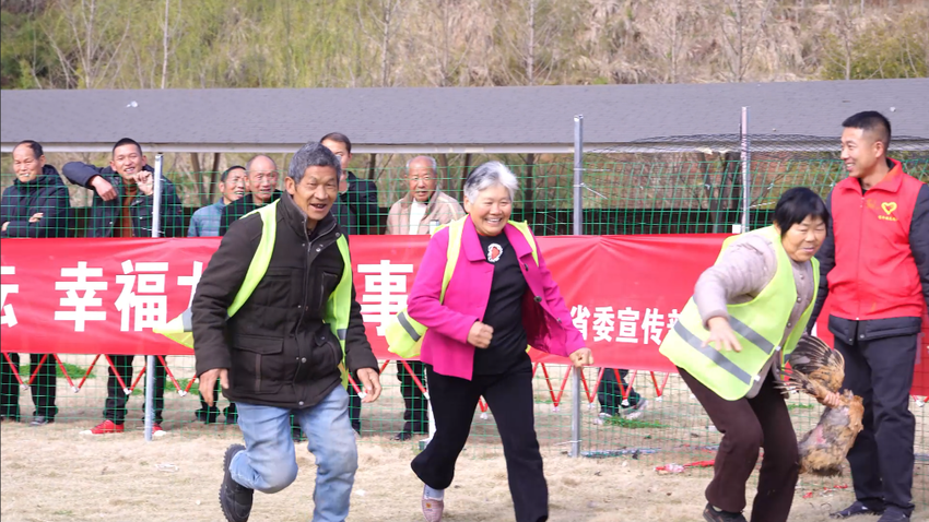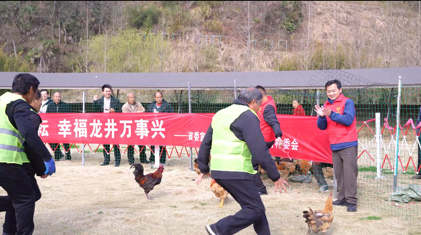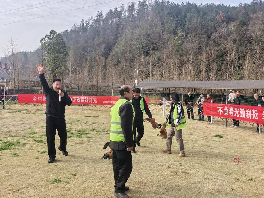 今日竹山网消息 春分至,万物生,春耕忙。3月20日,省委宣传部驻村工作队联合龙井村村“两委”,以“勤劳致富闹春耕·趣味抓鸡促增收”为主题,在龙家宴草坪举办了一场别开生面的趣味抓鸡比赛,吸引众多村民踊跃参与。