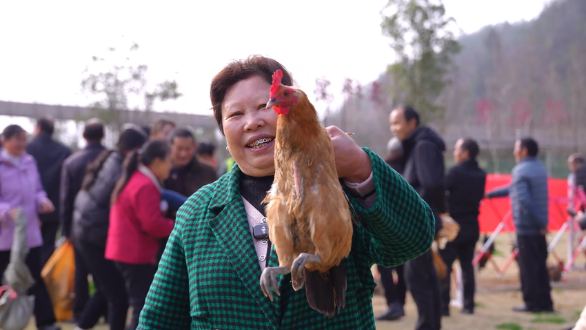 “眼要疾,手要快,还得讲策略!”成功擒获一只大公鸡的村民柏云飞,尽管气喘吁吁,脸上却洋溢着兴奋与自豪。每当有选手“一击即中”,高高举起战利品时,现场便爆发出热烈的欢呼。活动不仅为“擒鸡能手”准备了土鸡作为奖品,也为所有参与者贴心地准备了纪念品,确保人人参与、人人尽兴。