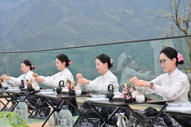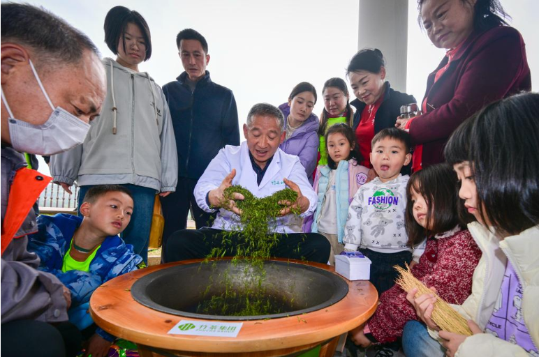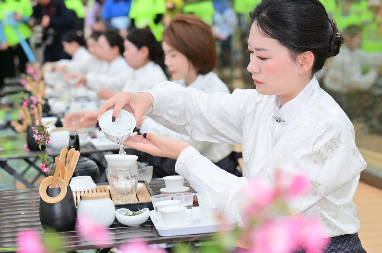 今日竹山网消息 3月29日,竹山县“武当山茶 · 竹山硒茶”第四届茶旅文化月春茶开采活动在城关镇刘家山茶园启动,广大干部群众和中小学生在茶园中,积极参与茶旅文化宣传和茶园徒步活动,观摩茶艺师手工制茶和“无我茶”茶艺表演技艺,在体验采茶、泡茶、品茶中,感受茶技、茶艺和茶仪文化的博大精深,增强建设美丽家园的信心和力量。(石濡华 摄)