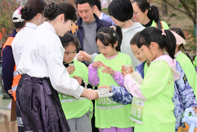 广大干部群众和中小学生在茶园中参与茶旅文化宣传和茶园徒步活动