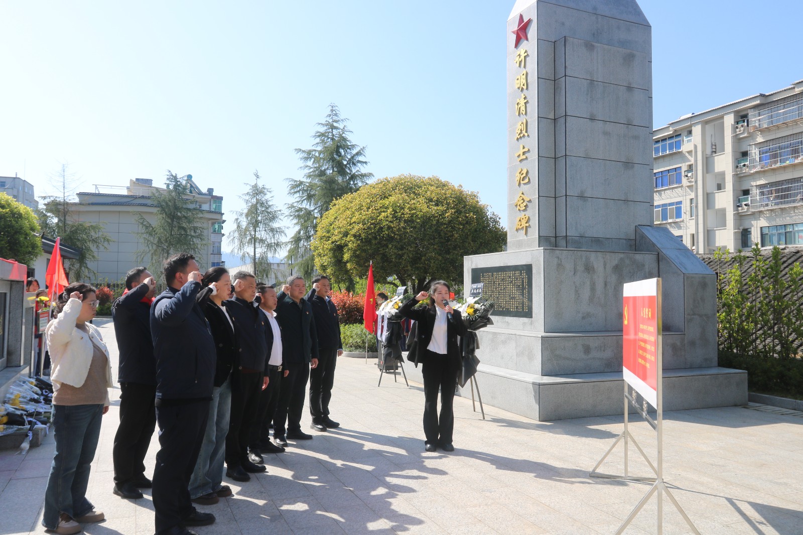 在庄严肃穆的烈士纪念碑前,全体师生怀着无比崇敬的心情整齐列队、肃立致敬,活动在《献花曲》的悠扬旋律中拉开序幕。少先队员代表向烈士敬献花篮,全体人员向长眠于此的革命先烈行三鞠躬礼,深切寄托对英雄的哀思与敬意。随后,学校少工委副主任陈玲深情讲述许明清烈士的英雄事迹,带领大家回望烽火岁月,让队员们真切感悟革命先辈不屈不挠、英勇无畏的斗争精神。少先队员代表吴美宣发言表示,将铭记先烈遗志,珍惜当下幸福生活,刻苦学习、奋发向上,争做新时代好少年。