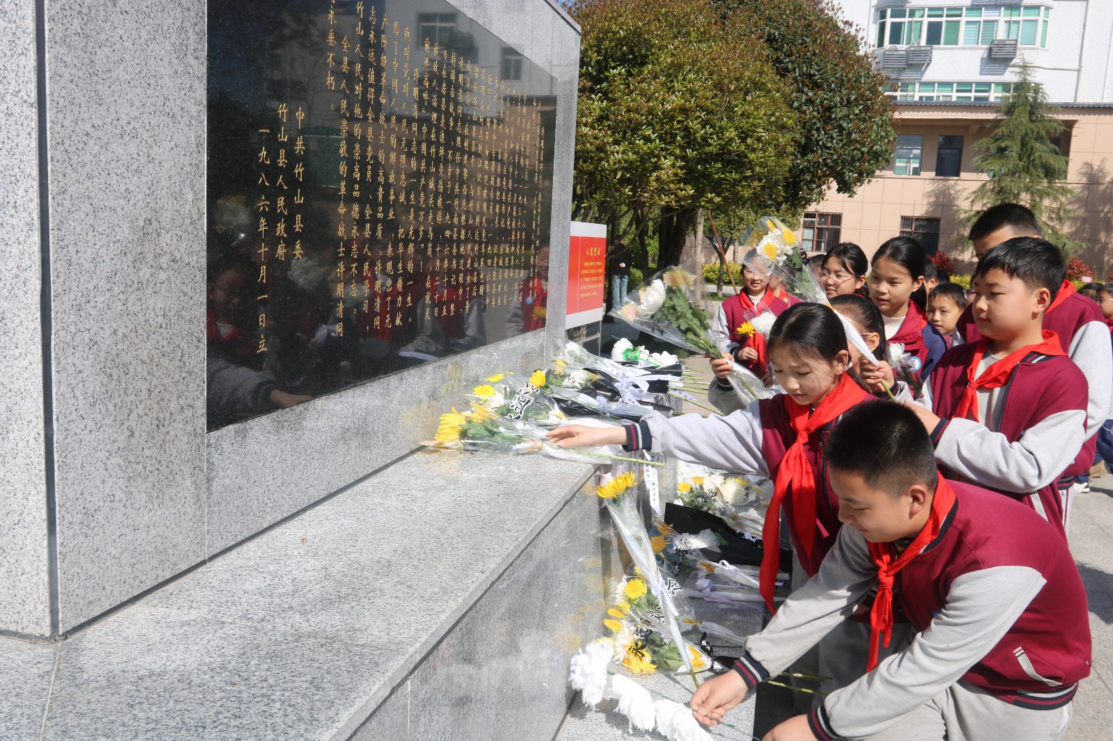 今日竹山网消息 4月1日,县第二实验小学260名师生代表走进许明清烈士陵园,开展清明节祭扫英烈活动,缅怀革命先烈,传承红色基因。
