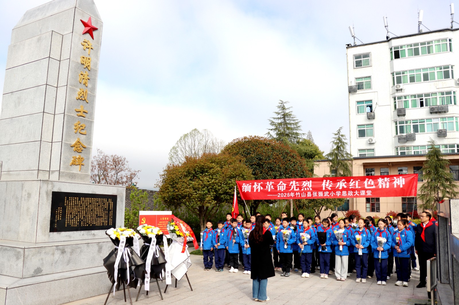 今日竹山网消息 4月1日,张振武小学组织50名少先队员代表前往许明清烈士陵园,开展“追寻·2026·清明祭英烈”主题思政大课堂活动,以行动致敬英烈,以初心赓续荣光。