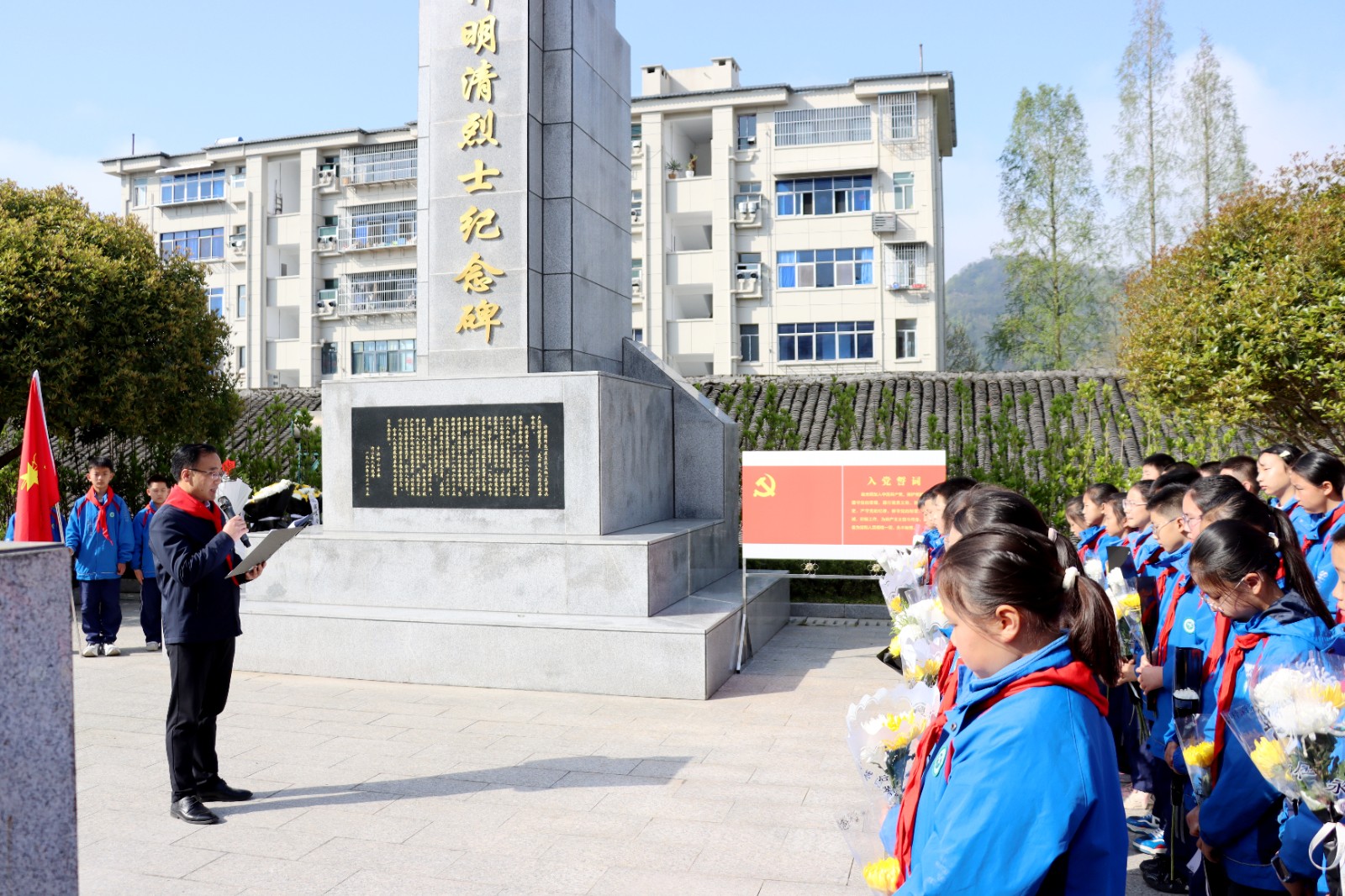 祭扫仪式在庄严肃穆的氛围中拉开帷幕。全体师生肃立致敬,齐唱国歌。少先队员代表胡馨月讲述了许明清烈士为竹山解放事业英勇献身的感人事迹,带领大家重温烽火岁月。学校党总支副书记为全体师生讲授专题思政课。随后,队员们行三鞠躬礼,依次敬献鲜花,并在队旗下重温入队誓词。