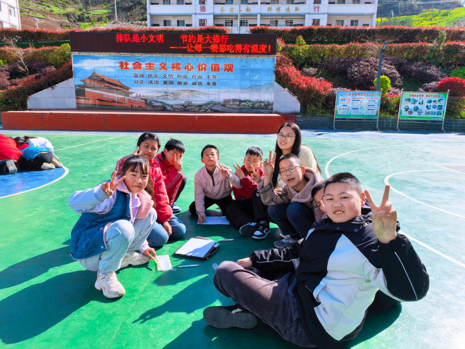 活动中,同学们以小组为单位,围绕“团结、自信、阳光”主题热烈讨论、分工协作。大家结合小组特色,巧妙融入星星、书本、笑脸等元素,精心构思图案、搭配色彩,将对集体的热爱与对成长的期许倾注于笔尖。