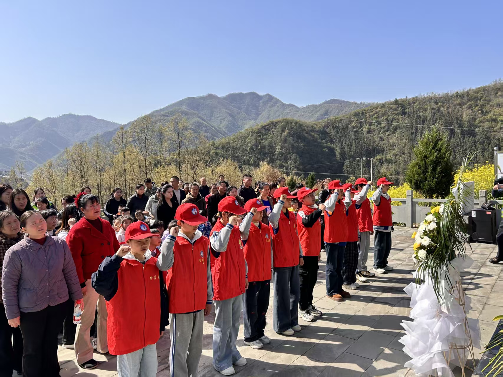 同日,县公共检验检测中心青年志愿者来到陵园,仔细擦拭纪念碑、清扫落叶杂草,以实际行动维护陵园的庄严整洁。县第二实验小学、张振武小学等学校的260余名师生代表也来到这里,在《献花曲》中敬献花篮,行三鞠躬礼,并庄严宣誓:“准备着,为共产主义事业贡献力量!”稚嫩而坚定的誓言在陵园上空回荡。