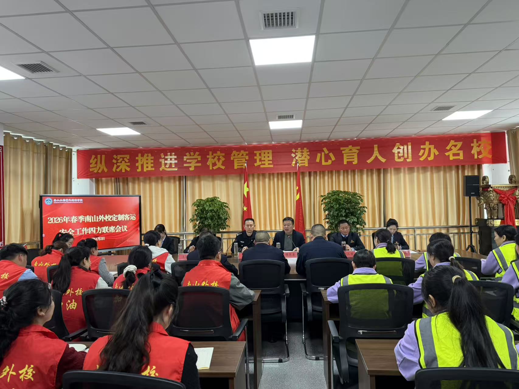 今日竹山网消息 4月2日,南山五福堂外国语学校召开2026年春季定制客运安全四方联席会议。
