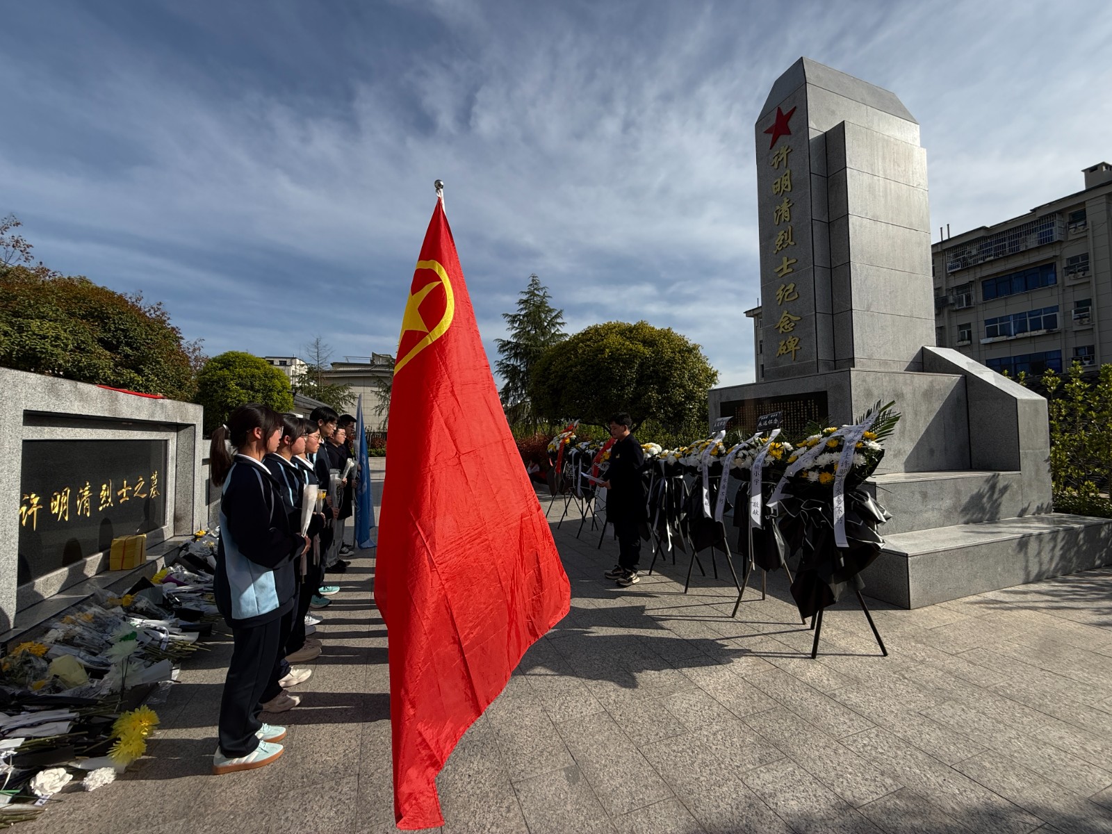 在庄严肃穆的纪念馆前,全体师生整齐列队,向许明清烈士敬献花圈、肃立默哀,深切缅怀烈士的丰功伟绩。伴随着深情的讲解,师生们共同回顾了许明清烈士为民族解放事业英勇献身的壮丽人生,重温了那段硝烟弥漫的峥嵘岁月。同学们驻足凝视,认真聆听,心中深深扎根下对英雄的崇敬与敬仰。
