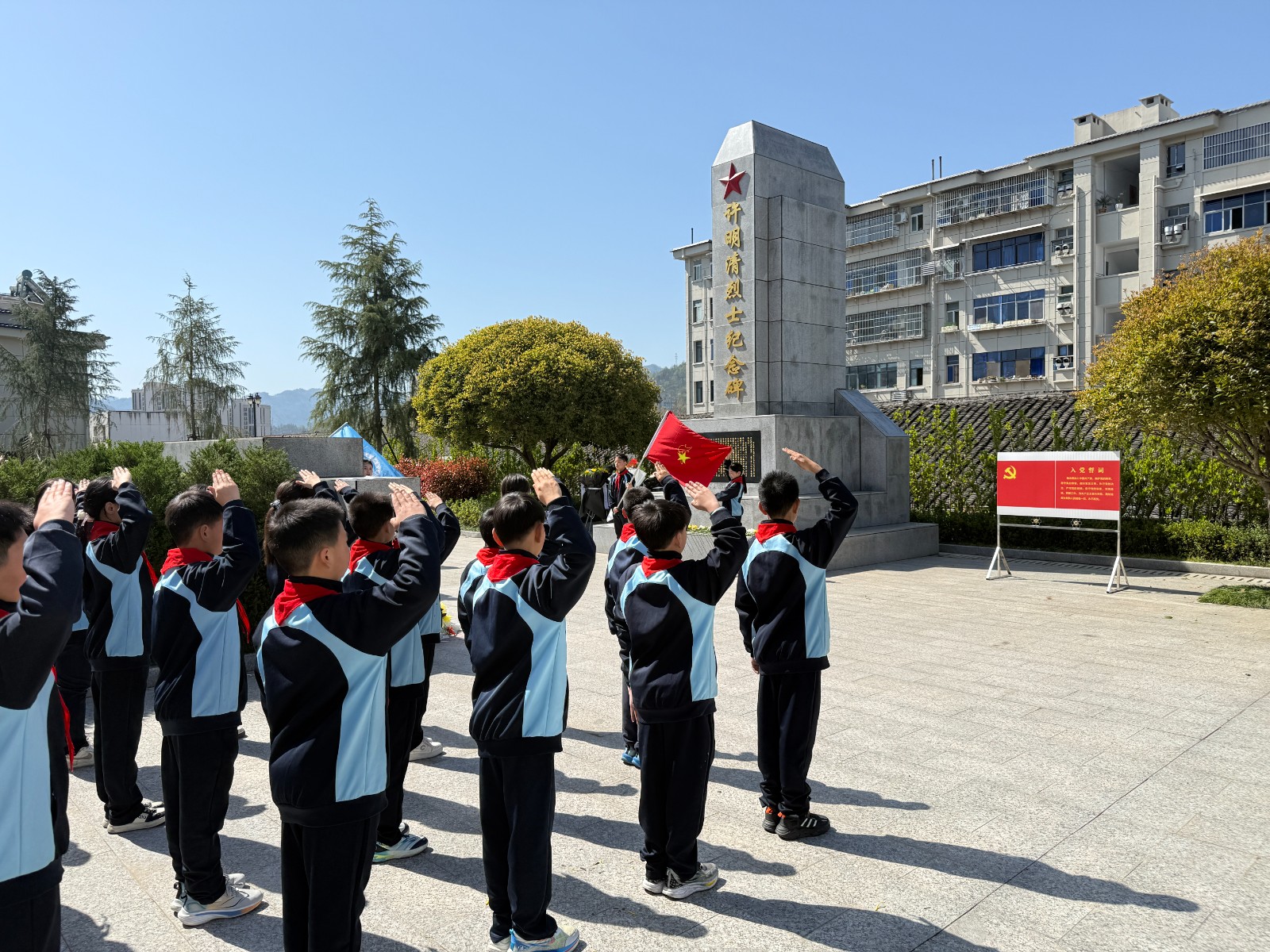 今日竹山网消息 4月1日,南山五福堂外国语学校小学部与初中部分批次组织学生,前往竹山县许明清烈士纪念馆开展清明扫墓祭祀活动。