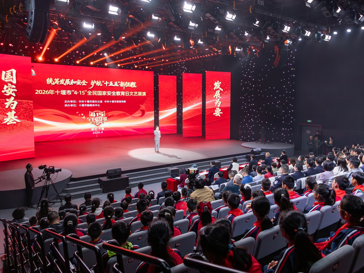 当天,由竹山县新时代文明实践志愿服务总队和“堵河皮影话政策”志愿服务队带来的原创皮影戏《石光魅影》,在2026年十堰市“4·15”全民国家安全教育日文艺展演上第三个登场。老艺人们双手翻飞,用竹山高腔唱起了“资金安全、电网安全、矿山安全”这些新词儿,台下一片叫好。