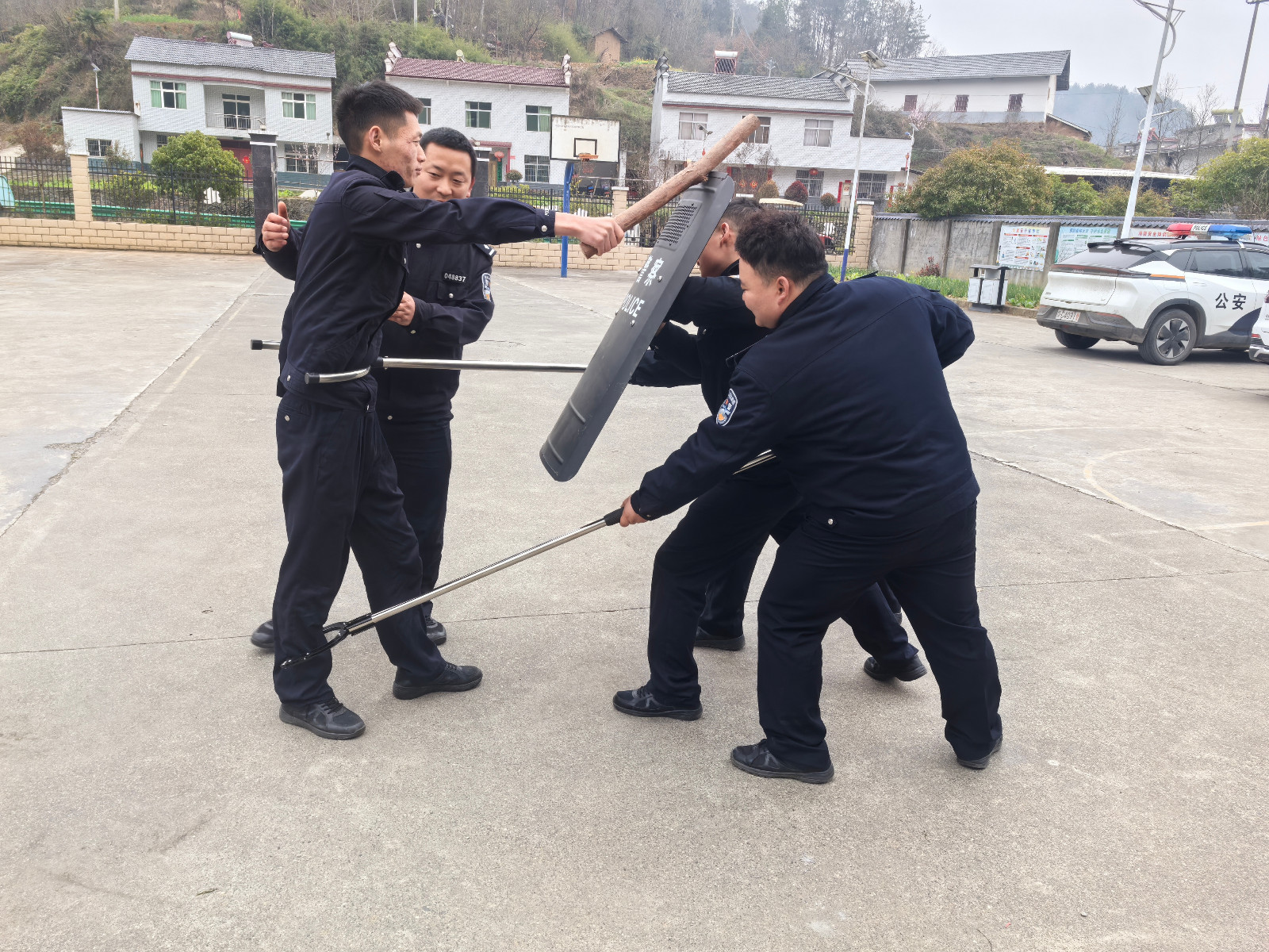 在实操训练与器械使用教学中,民警们现场模拟了突发案事件警情处置,从接警处警、现场研判到警械使用、法言法语运用教官重点对警用盾牌、伸缩警棍、约束装备、执法记录仪等常用警用器械的性能参数、操作方法、使用规范及注意事项进行细致演示,手把手指导民辅警掌握正确握持、规范使用、协同配合的技巧。针对器械使用中的易错环节、实战应用场景,教官逐一纠正动作偏差,确保每一位民辅警都能做到熟练操作、规范使用、精准处置。同时,围绕日常接处警、人员控制、现场防护等实战场景,组织开展模拟演练,让民辅警在贴近实战的环境中磨合配合、积累经验,提升快速反应、协同作战的实战能力。