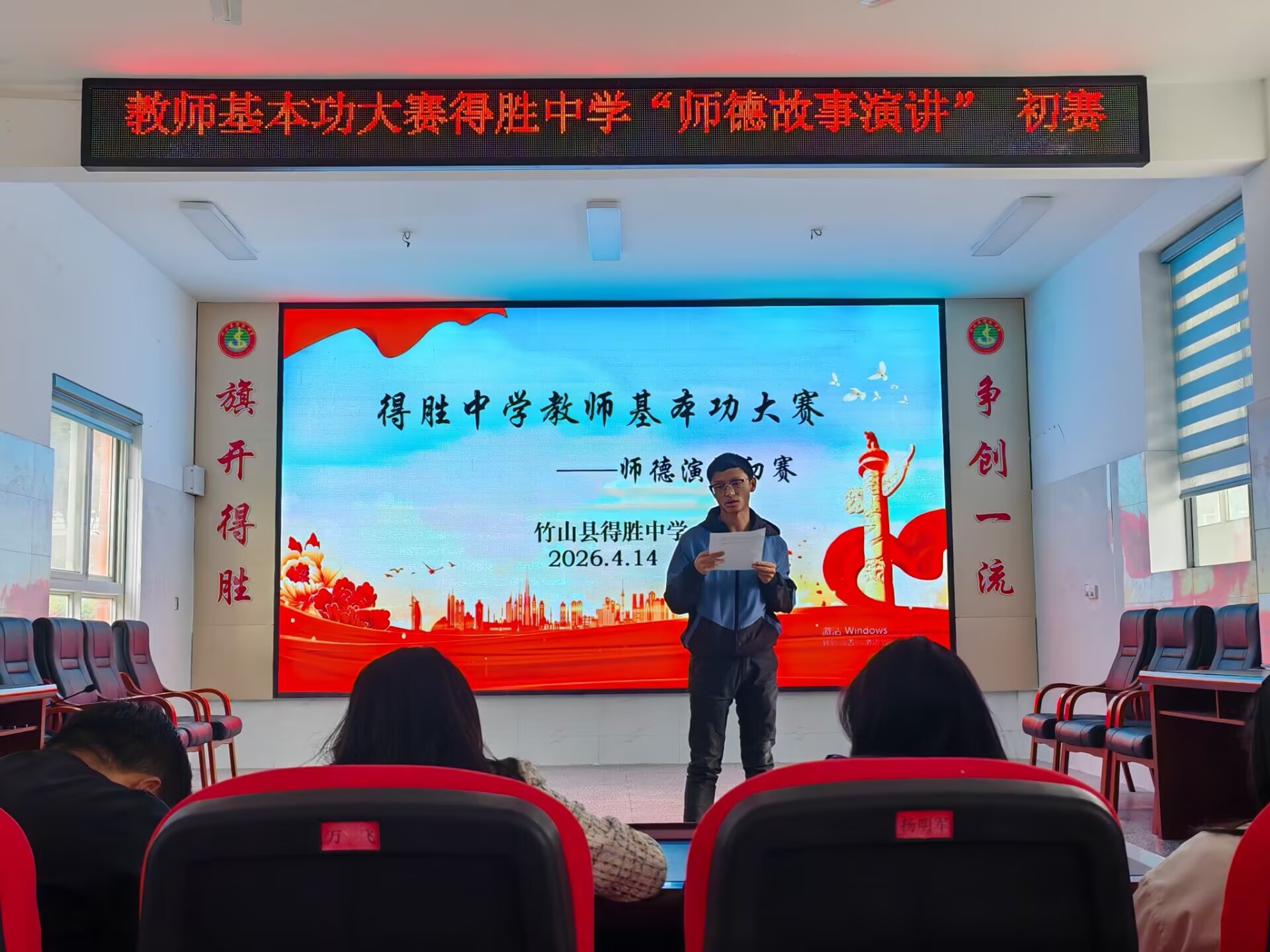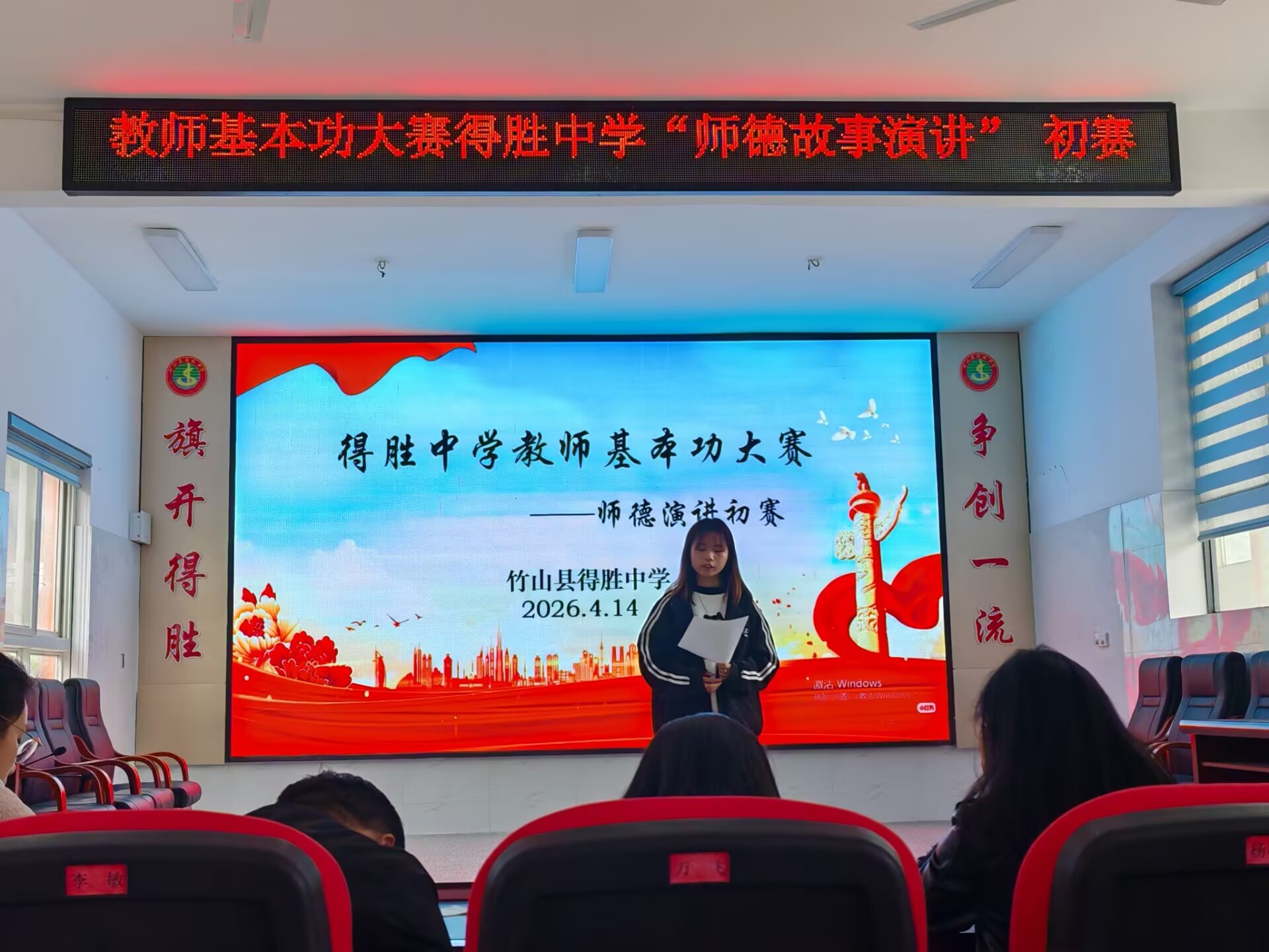 今日竹山网消息 为弘扬高尚师德,彰显育人情怀,激发广大青年教师关心爱护学生,潜心教书育人的工作热情,4月14日下午,得胜中学在会议室举行了“师德故事演讲”比赛活动,学校青年教师以真挚情感讲述育人故事,诠释教育初心。