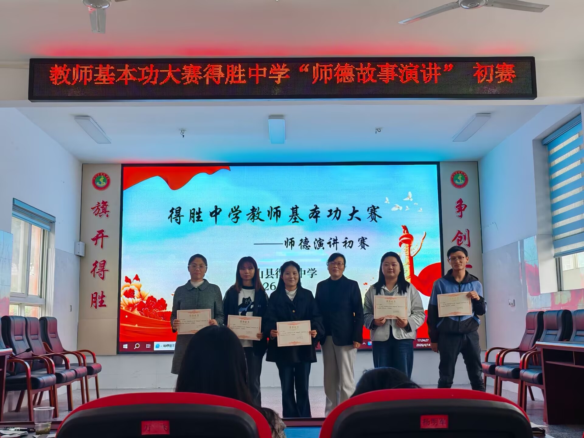 评委组从演讲内容、语言表达、情感感染力等方面进行综合评分,最终陈敏婷、程玉和伍艳灵等获得了一二三等奖。副校长蔡达辉在总结中指出:“教师是立教之本、兴教之源,希望全体教师以此次比赛为契机,坚守教育初心,用爱心、耐心、责任心培育学生,做学生健康成长的引路人。”