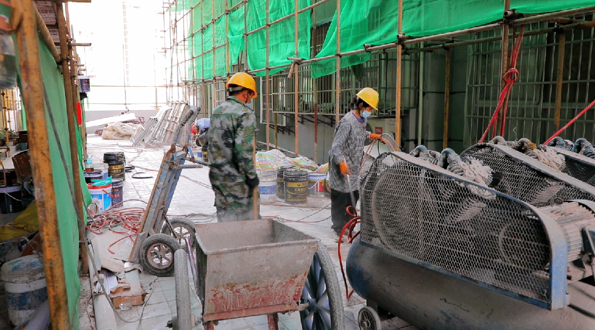 4月17日,记者在吉安花园小区看到,施工人员正对外墙进行更新作业,楼顶防水铺设、公共区域内墙粉刷同步开展。在庸都宾馆小区,改造同样火热进行,施工团队聚焦屋面防水、排水系统优化、强弱电线路规整,同时开展小区环境整治与外墙翻新,全面解决小区设施老化、环境杂乱等问题。