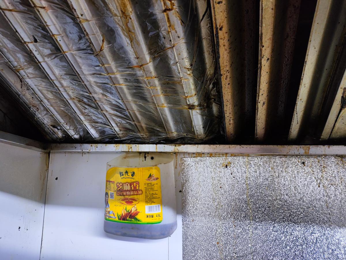 上榜理由:食品加工操作间卫生状况差,墙壁、地面、排烟设施有油污未定期清理;未配备防蝇、防鼠设施;未建立食品进货查验记录。