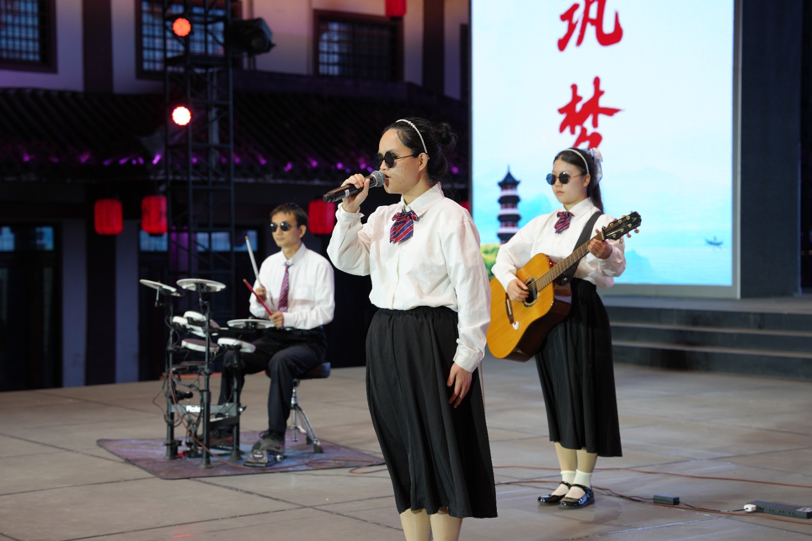本次演出众多节目的伴奏由汉水吟月乐队担任,成为整台演出的一大亮点。汉水吟月乐队由十堰特校残疾学生组成,前身是十堰特校盲人班,但这些孩子们吹拉弹唱各有所长,现场演绎深深打动了观众。为鼓励这个特殊群体的艺术发展,我县圣水湖旅游集团董事长李德琴现场承诺,向汉水吟月乐队捐赠了5万元。