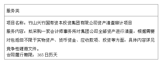 二、项目名称:竹山兴竹国有资本投资集团有限公司资产清查审计项目
