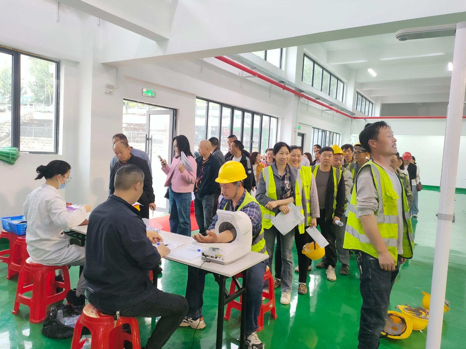 今日竹山网消息 4月28日,十堰市总工会移动体检车驶入竹山县体育中心,为奋战在建设一线的农民工群体开展免费健康体检服务,用贴心、便捷的医疗服务,为城市建设者们筑牢健康防线。