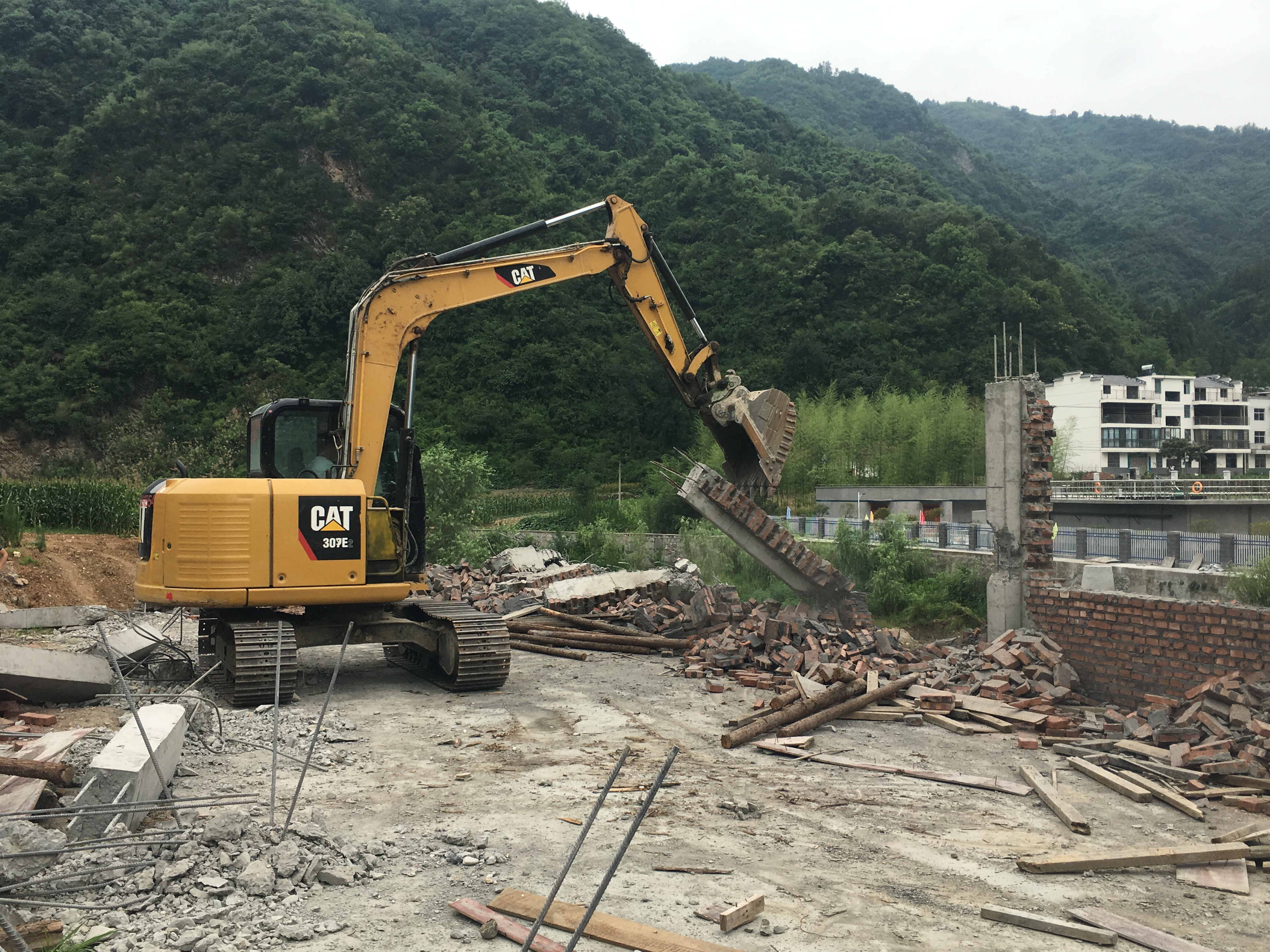 今日竹山网消息 未经过任何手续批准,在河道边进行违法建设行为,既损坏村貌,又污染水体。7月11日,县城管执法局联合地方政府对楼台乡三台村一处违法建筑物进行依法拆除。