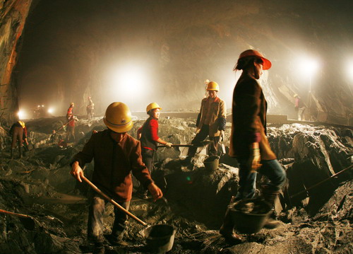 近日,竹山县潘口水电站主体工程之一的导流洞洞口衬砌工程正在紧张进行,洞内底板清基、混凝土浇筑施工一派繁忙;大坝坝肩开挖、边坡喷锚支护、下游围堰防渗墙等工区按计划正在有序推进。