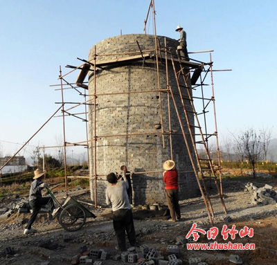 施工人员在建蓄水70吨水塔
